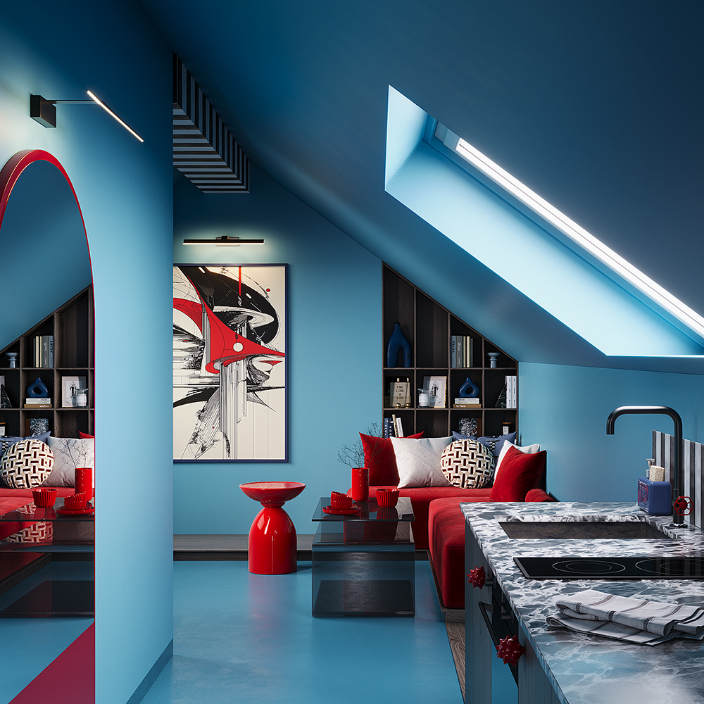 Das LED-Licht ist zur Wand hin ausgerichtet, wodurch die Raumgeometrie gezielt in Szene gesetzt werden kann.