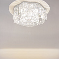 Kristalle verschiedener Formen hängen in einem dichten Schleier von dem profilierten Sockel und erfüllen den Innenraum mit einer Atmosphäre von Luxus. Die Leuchte ist aus verchromtem Metall gefertigt, das das Licht der Lampen reflektiert.