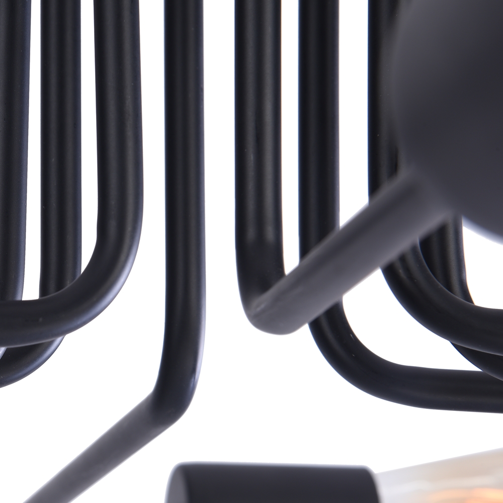 Die gesamte Konstruktion ist in mattem Schwarz gehalten, was den expressiven Charakter der Leuchten unterstreicht.
