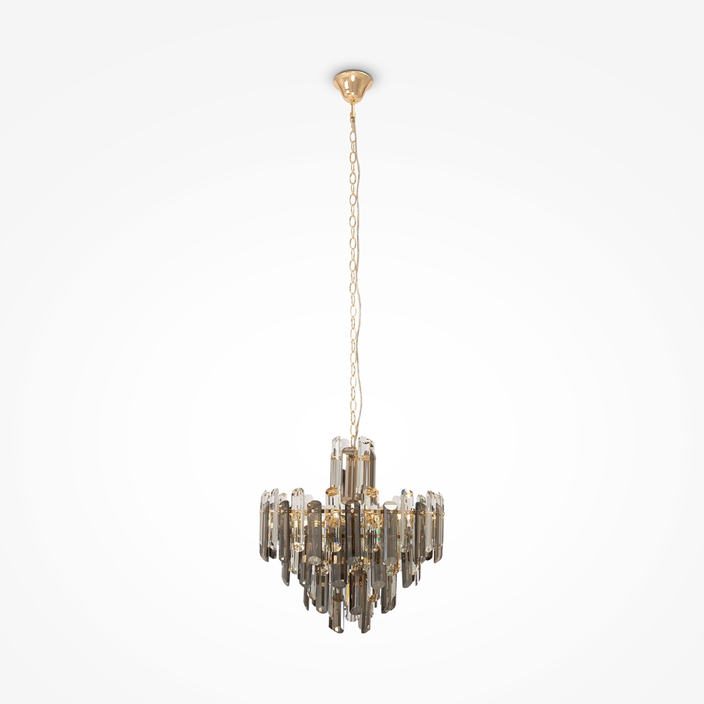 The Flare series combines two contrasting moods: on the one hand, a festive and elegant atmosphere reminiscent of the generous Art Deco style, and on the other, a bold and dynamic spirit that keeps pace with the times. This effect is achieved through decorative detailing. Traditional clear crystal captivates with its large architectural faceting, while the massive edges easily adapt to contemporary interior solutions. Golden-finished metal frames emphasize the richness and luxury of the design.