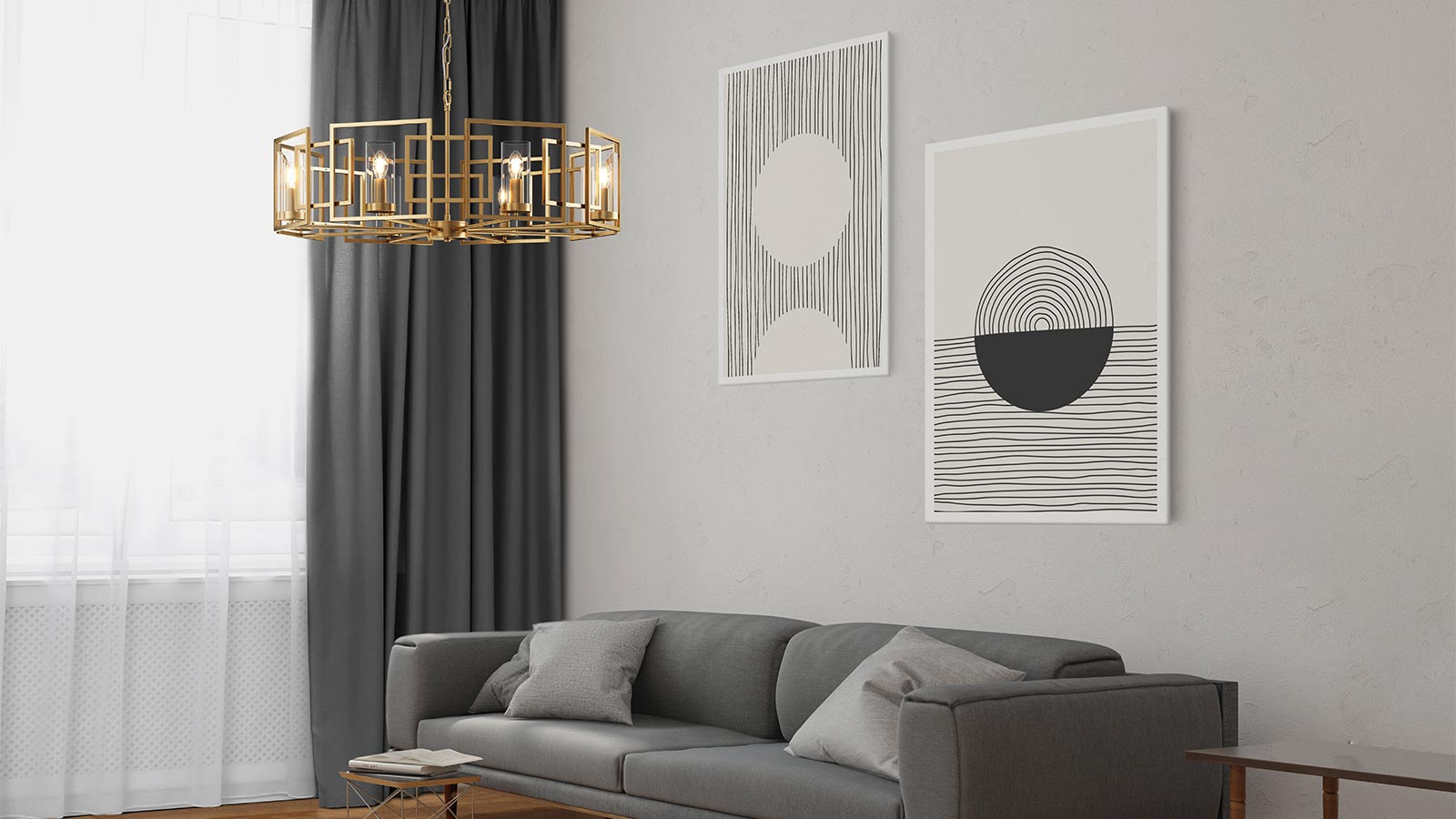 Die Leuchten der Serie sind in edlem Goldton lackiert.