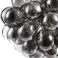 Die filigrane Konstruktion lebt vom Kontrast zwischen dem nickelfarbenen Metallgestell und den voluminösen Glaslampenschirmen.