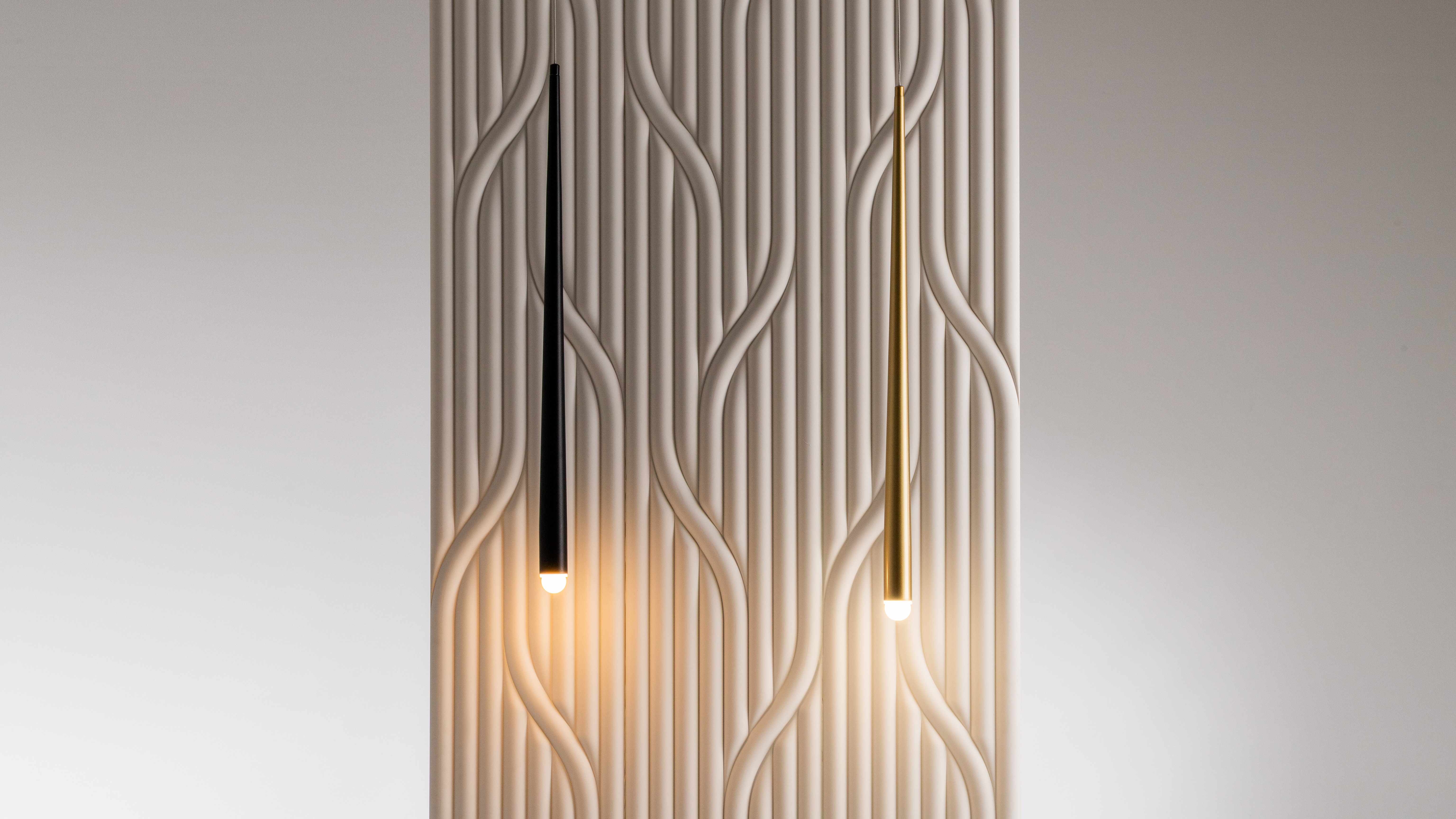 Die langen Lampenschirme mit LED-Lichtquelle sind in Schwarz oder Messing gehalten.