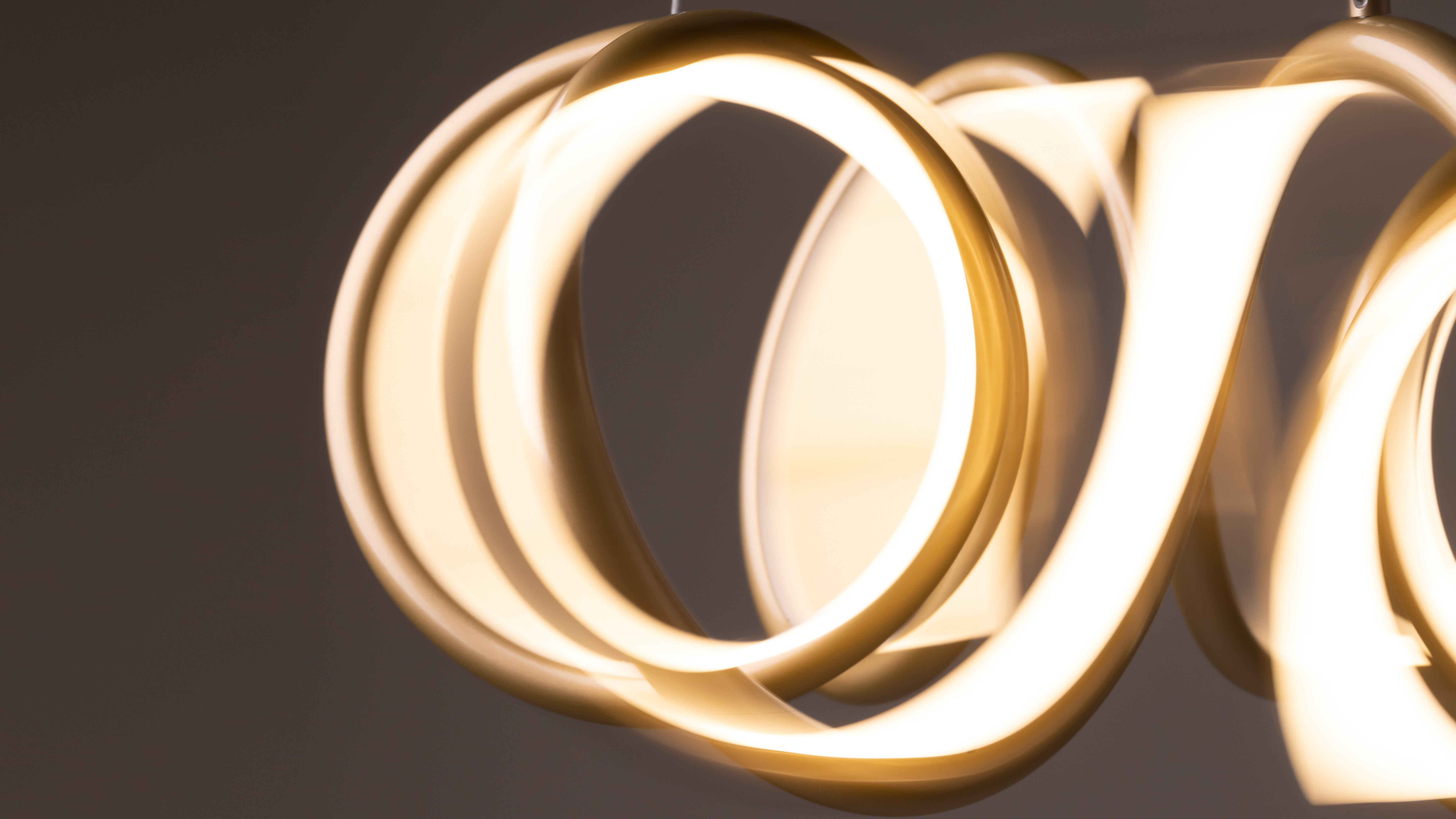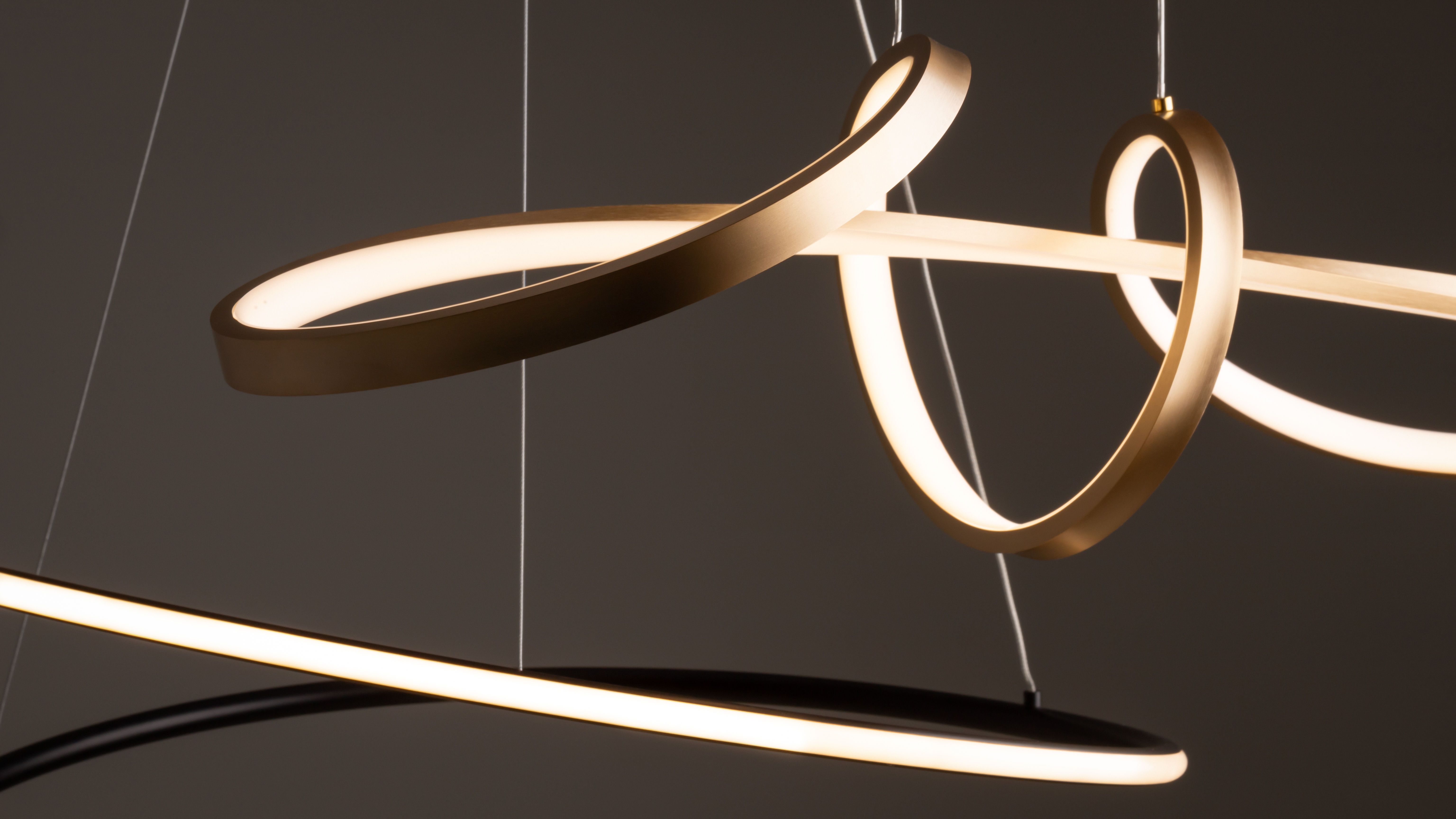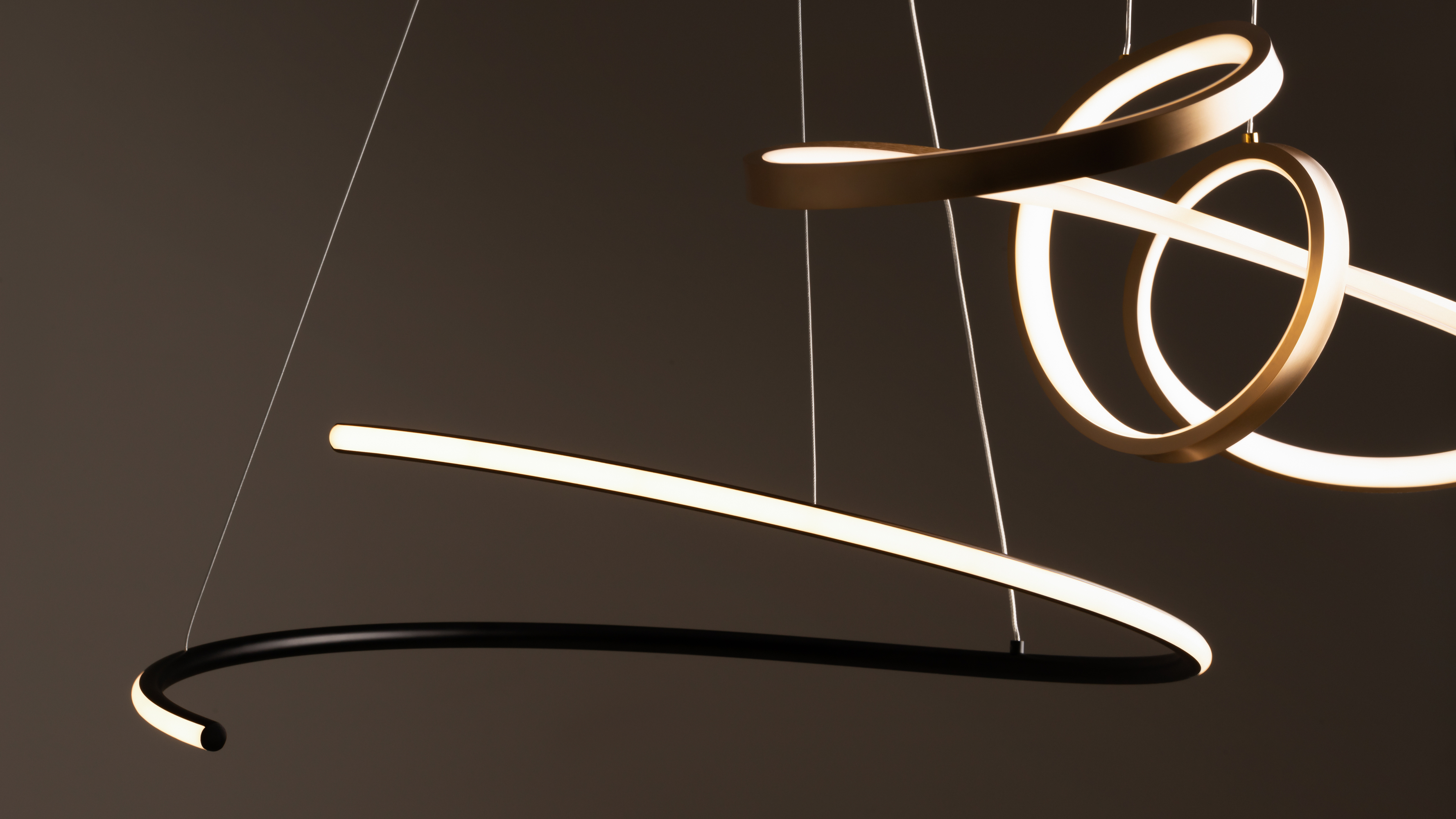 Die originellen Silhouetten der Leuchten der Serie Curve erzeugen den Effekt des bewegten Lichts. Sanfte, abgerundete Linien und nicht sichtbare Kabel erzeugen die Illusion von schwerelosem, in der Luft schwebendem Licht.