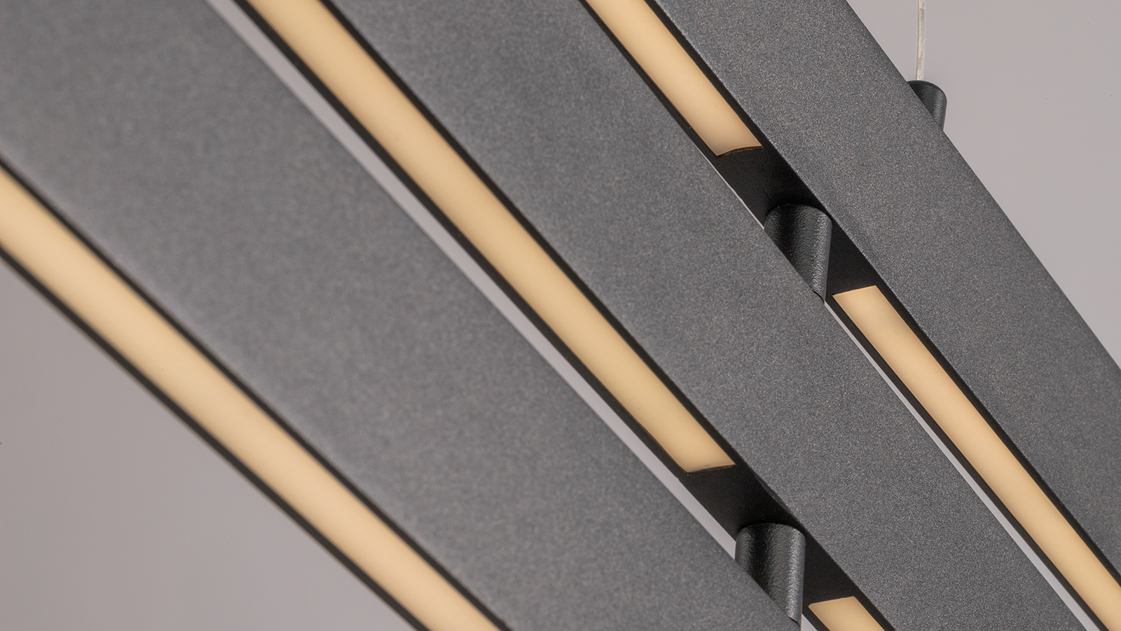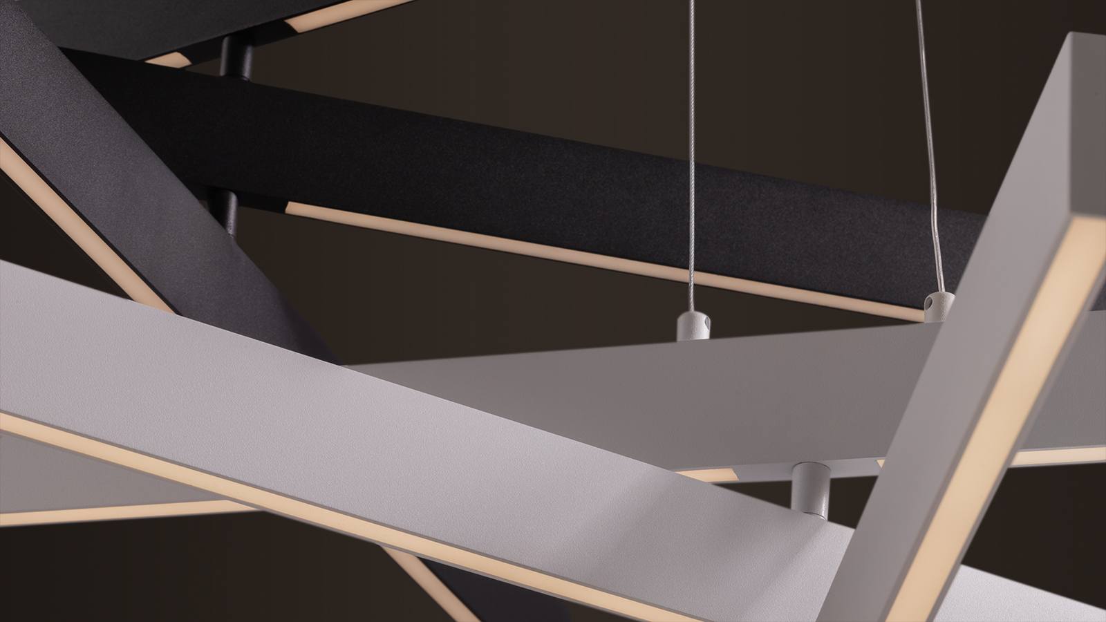 Die Serie Origami ist beweglich - alle Elemente können geöffnet oder enger zusammengefügt werden, so dass der Benutzer das endgültige Aussehen der Leuchte bestimmen und das Beleuchtungsniveau im Raum anpassen kann.