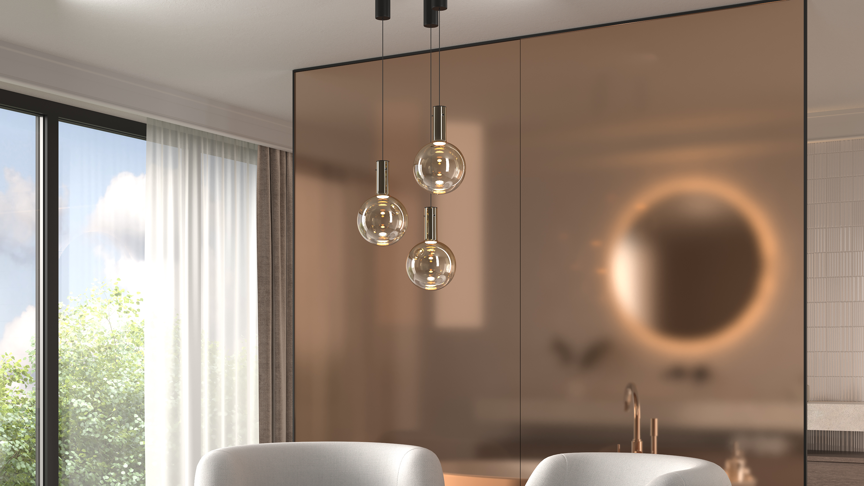 Die Pendelleuchten der Serie Nebula sind mit einem einstellbaren, 3 Meter langen Kabel ausgestattet, das es ermцglicht, verschiedene Innenraumkompositionen zu schaffen und sie in Rдumen mit hohen Decken zu verwenden.