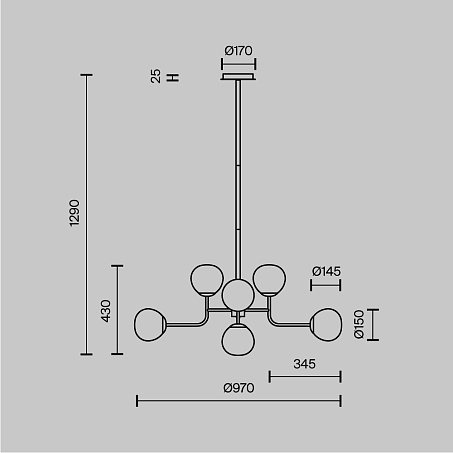 Bei den Kronleuchtern besteht die zentrale Stange aus drei Segmenten, wodurch sich auch hier die Höhe variieren lässt.