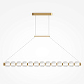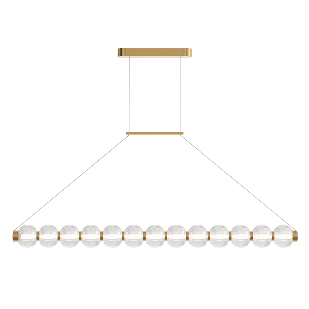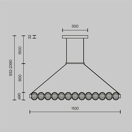 Ihre Komposition besteht aus mundgeblasenem Glas mit feinem Reliefmuster, das eindrucksvolle Lichtspiele erzeugt. Die einzelnen Glaskörper sind wie Perlen aufgereiht und werden von einem LED-Lichtfaden durchzogen, der sie von innen heraus erstrahlen lässt.