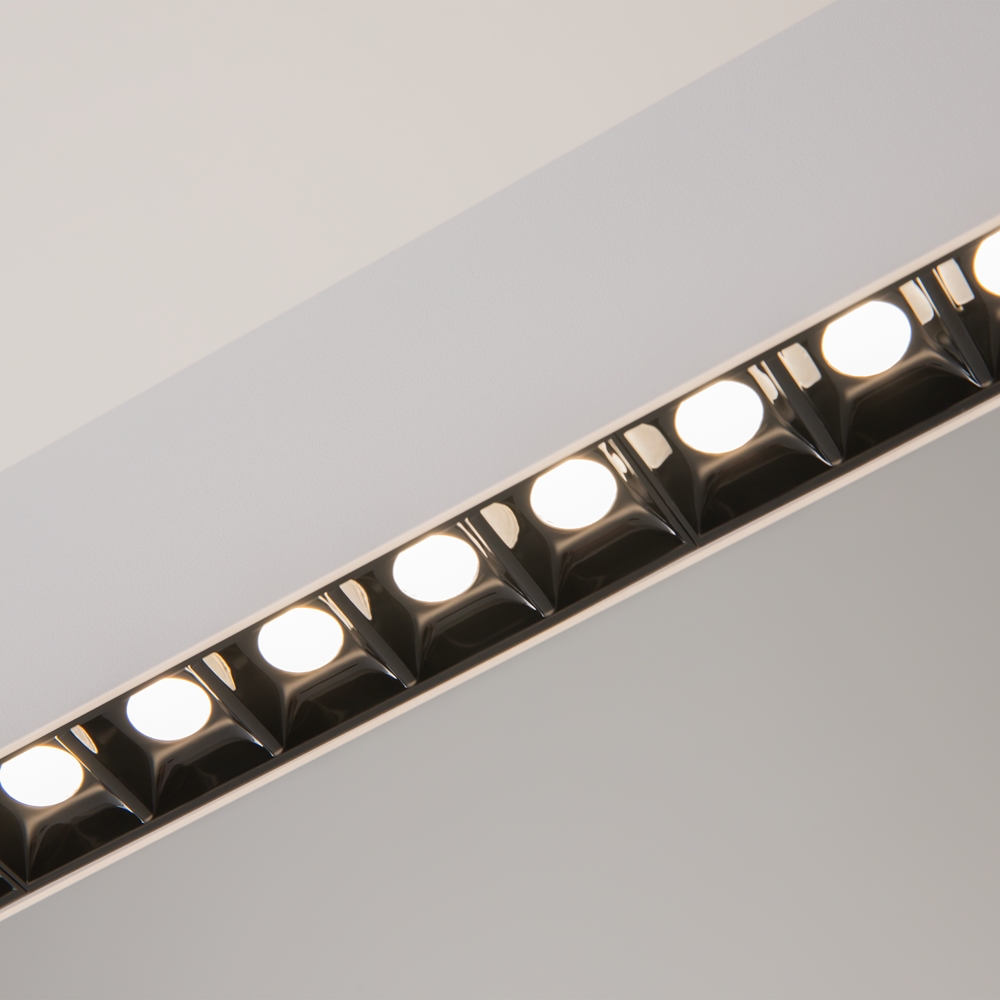 Konzipiert für die Gestaltung von Lichtarchitektur und Akzentbeleuchtung zur effektvollen Hervorhebung wichtiger Raumelemente. Modernes und lakonisches Design in universeller schwarzer Farbe passt perfekt in jedes Interieur. Die Leuchte ist aus robustem Aluminium gefertigt, das für Langlebigkeit und Zuverlässigkeit sorgt. Ausgestattet mit einem optischen System, das den »Licht aus dem Nichts«-Effekt erzeugt. Sie ist in den klassischen Farben Schwarz und Weiß erhältlich und fügt sich so in eine Vielzahl von Einrichtungsstilen ein. Sie hat eine kompakte und elegante Form, die sich perfekt für die Beleuchtungsgestaltung verschiedenster Räume eignet. Entwickelt nach modernsten Energieeffizienzstandards. Einfache und schnelle Installation durch die Kompatibilität mit dem Schienensystem. Das Produkt wird mit 5-Jahres-Garantie und Service-Support geliefert.