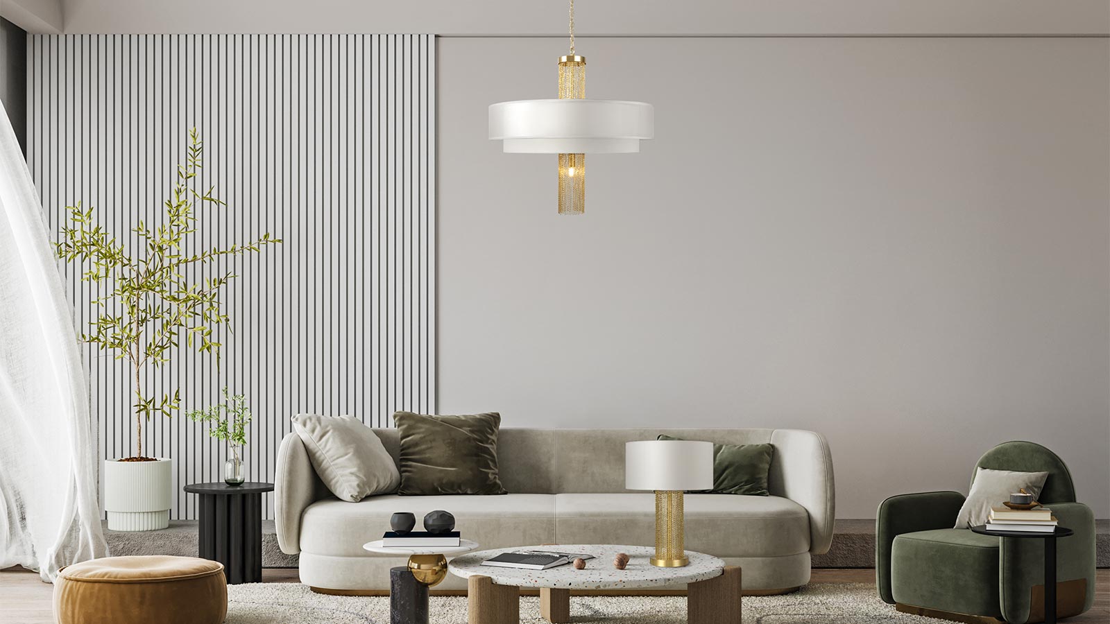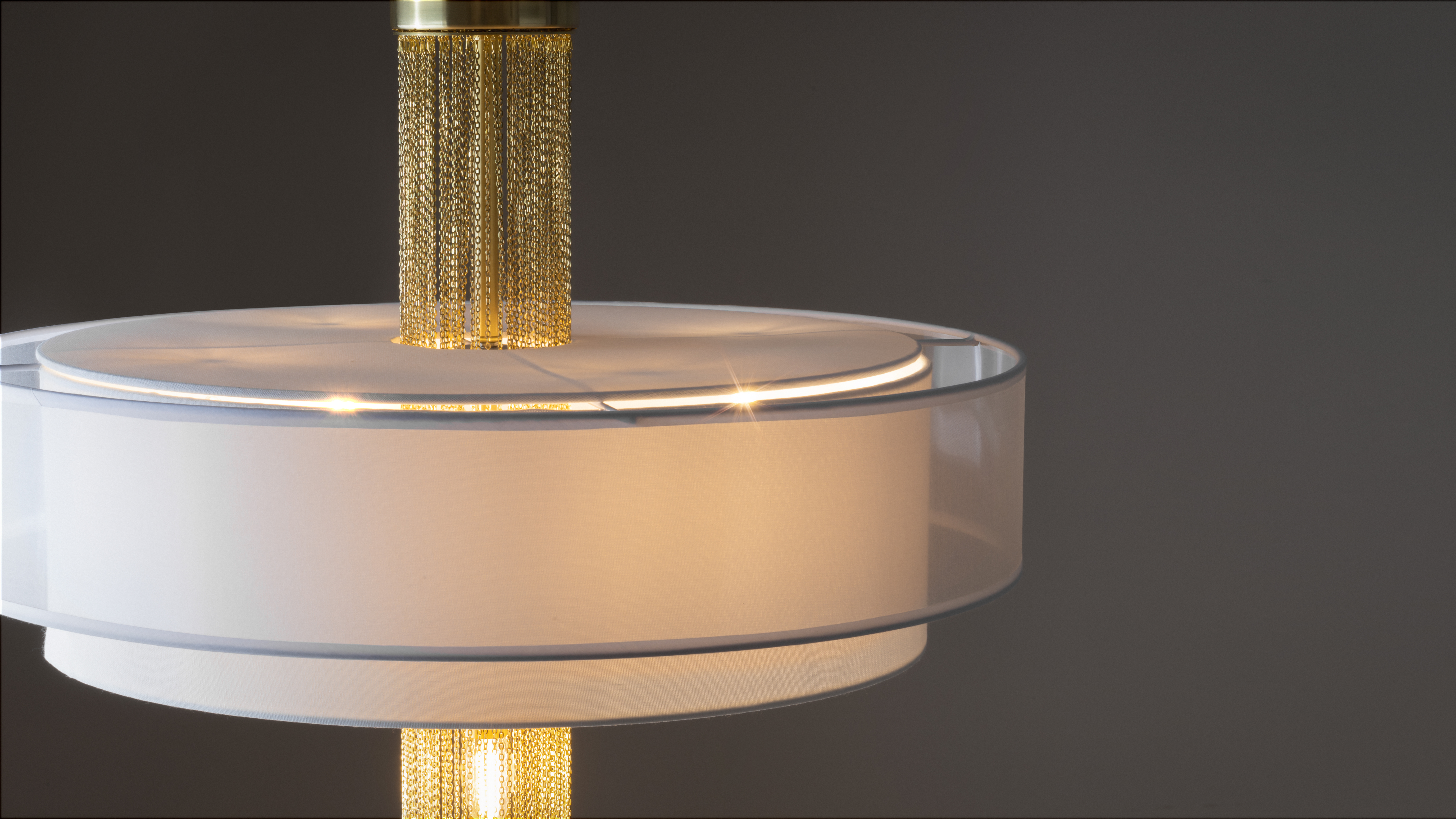 Das weiche, für die Augen angenehme Licht wird durch Stoffdiffusoren erzeugt, die die innere Struktur der Leuchten verdecken.