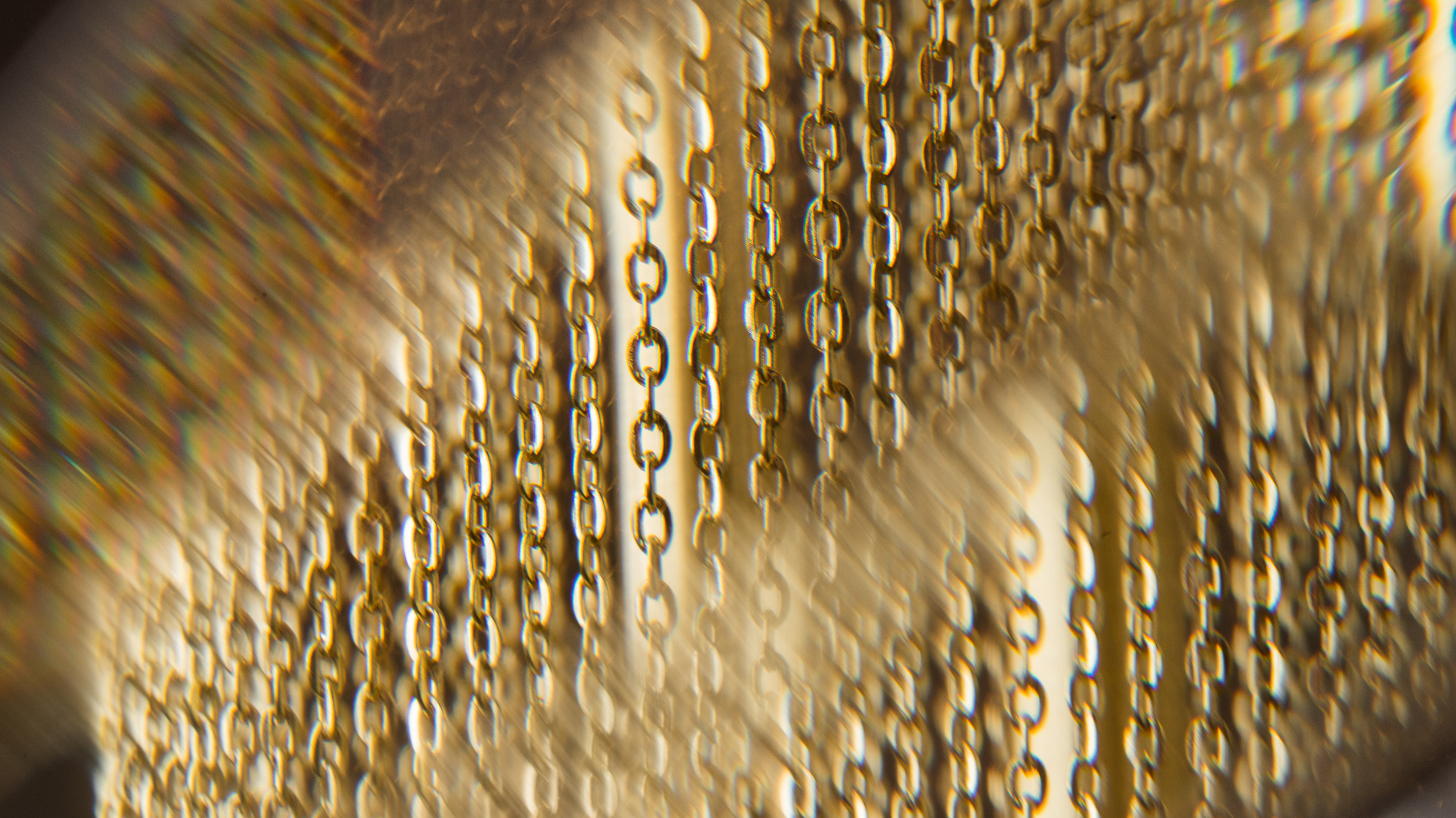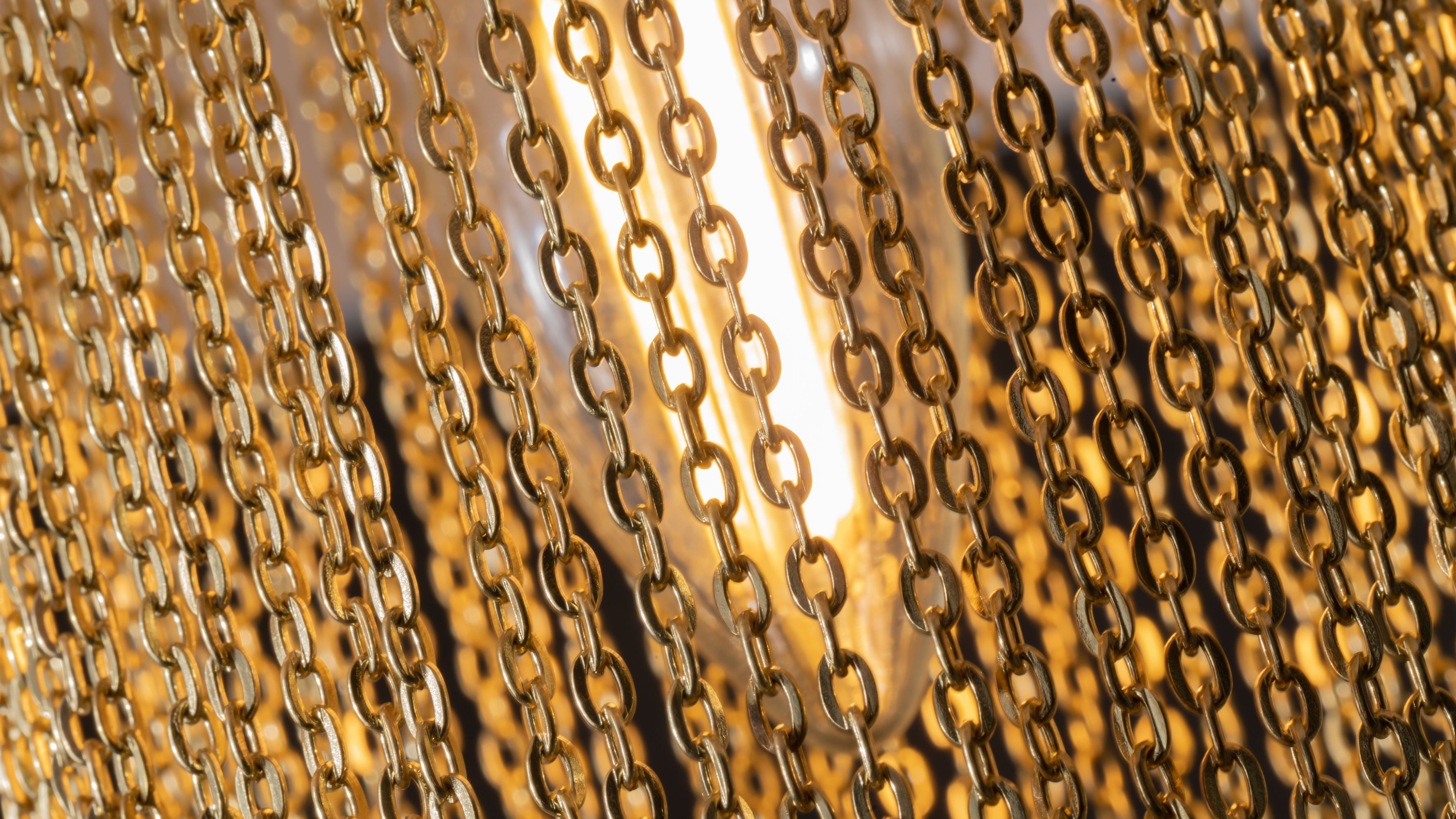 Die Serie zeichnet sich durch ein auffälliges dekoratives Element in Form vom goldenen Kettengeflecht aus, passend zu den Beschlägen.