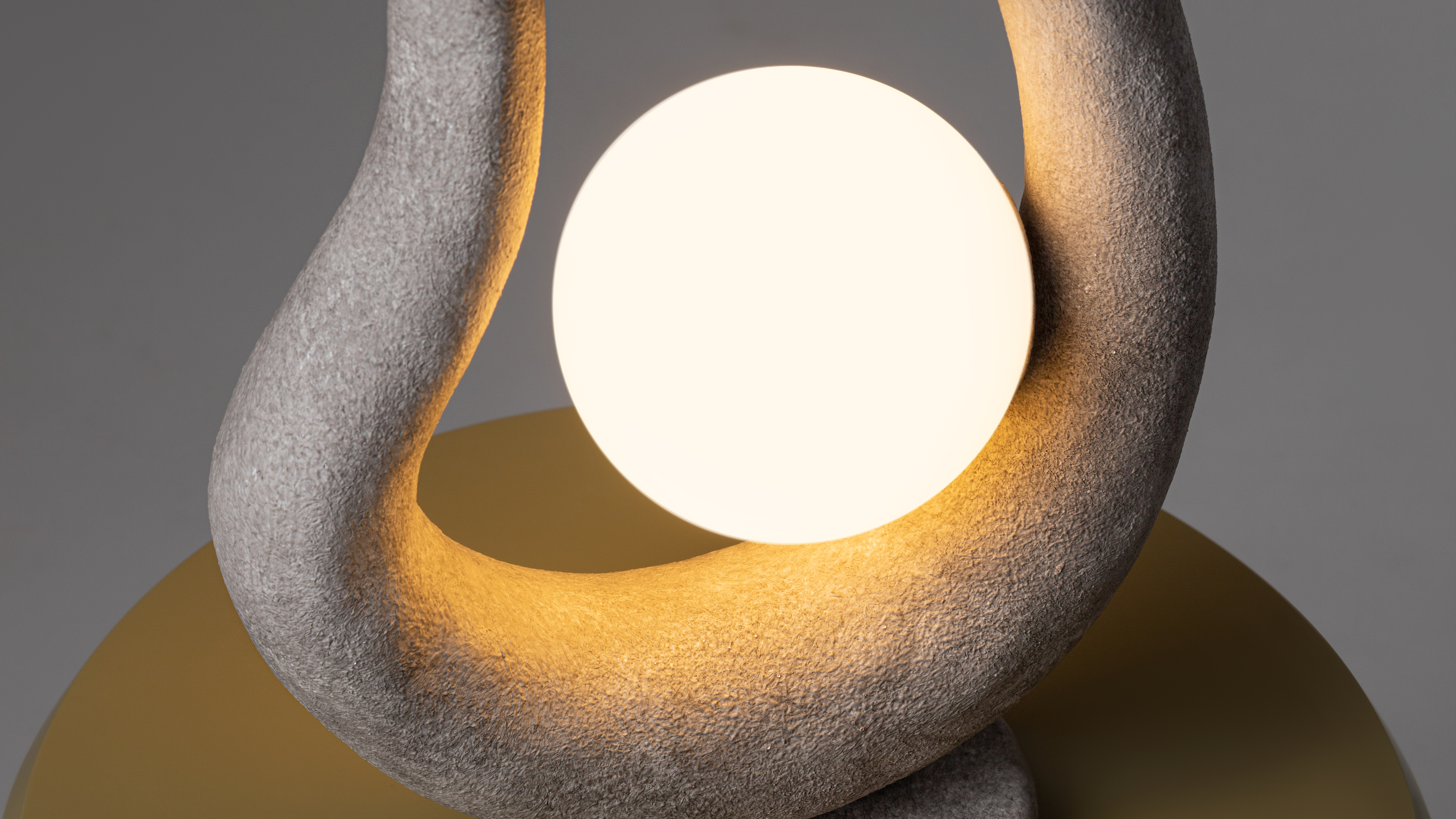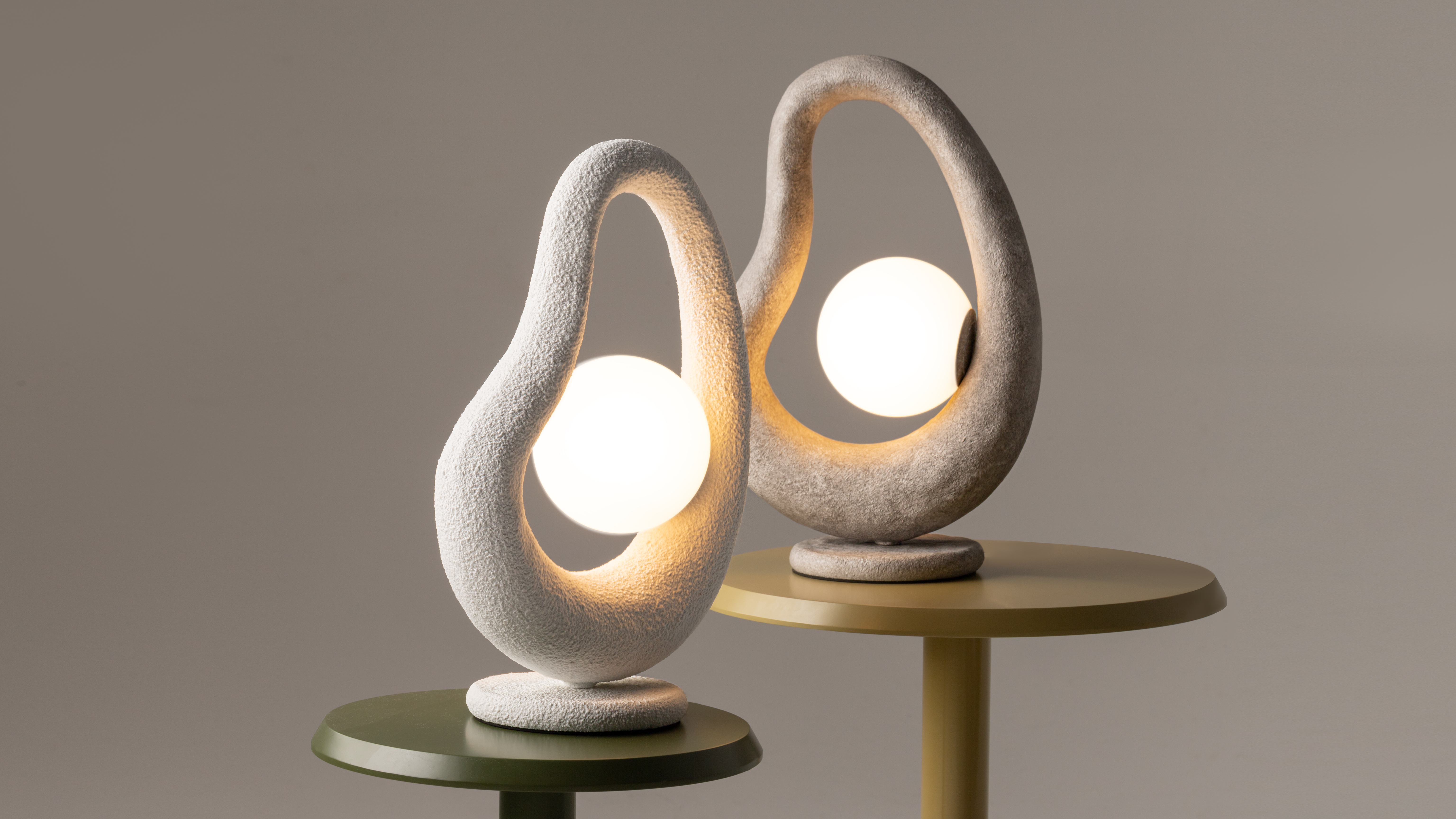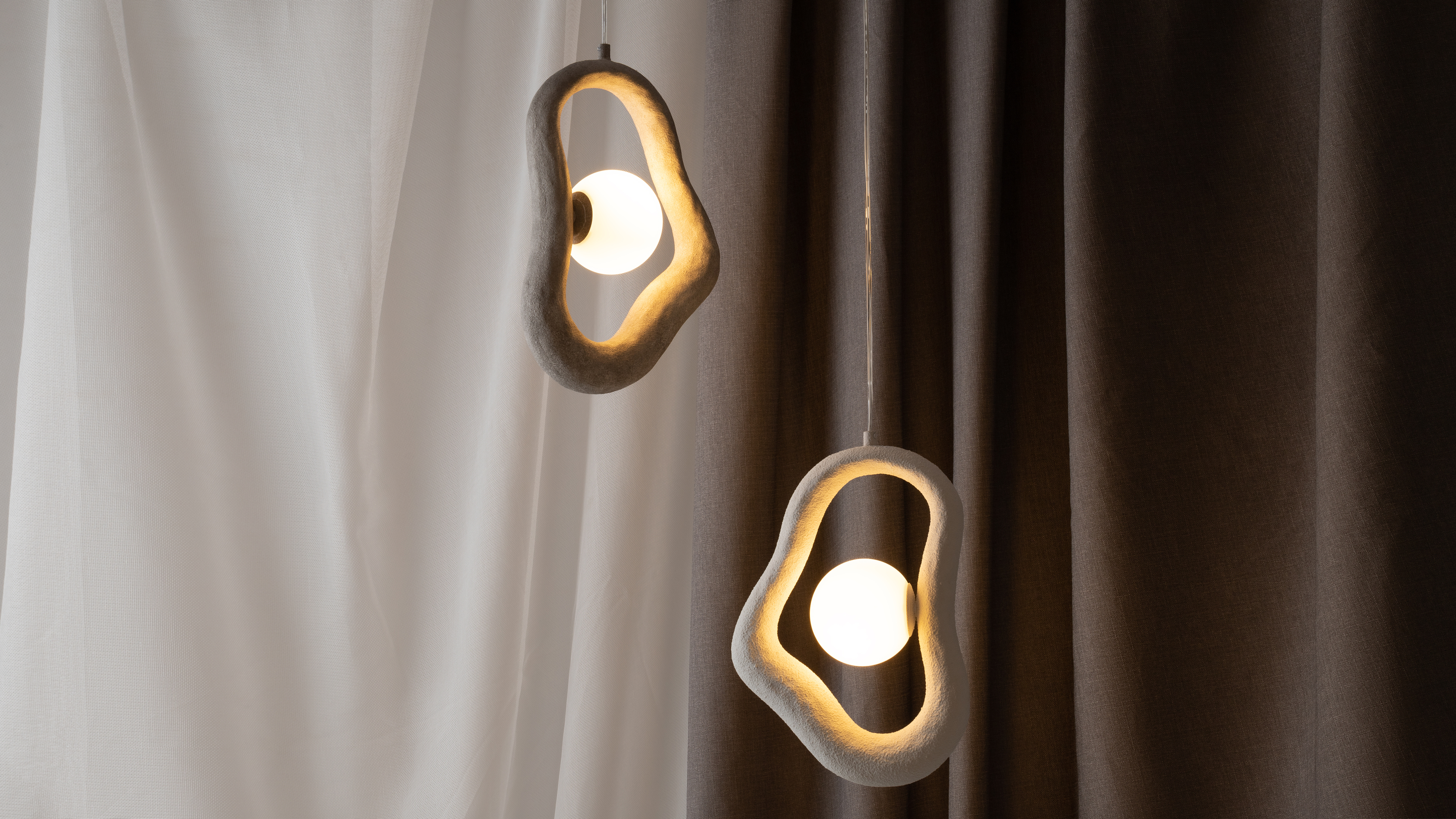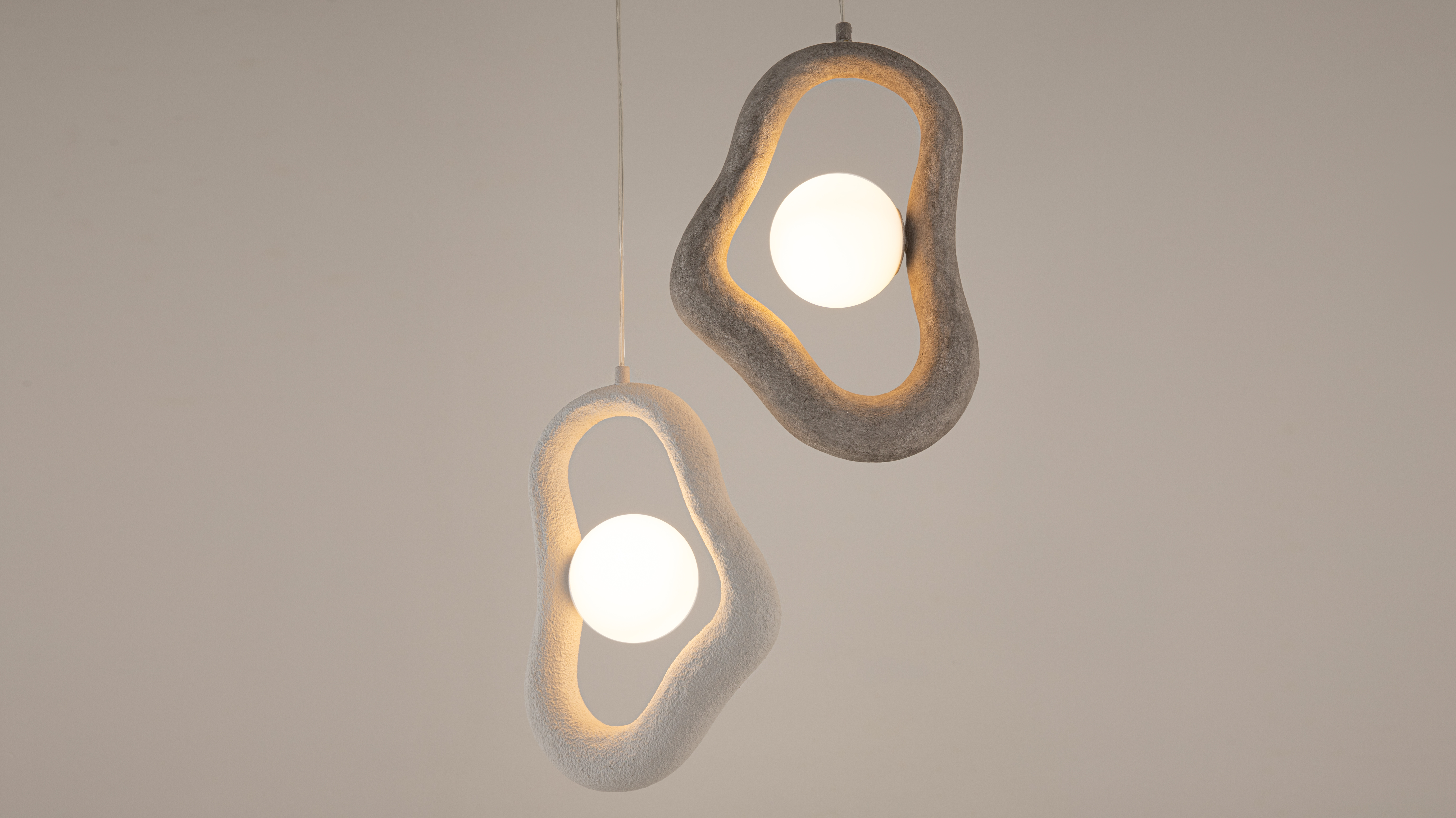 Die Kollektion umfasst Pendel und Tischleuchten mit sanften, organischen Formen, die an natürliche Linienführungen erinnern. Erhältlich in zwei Ausführungen – geschichtetem Beton oder strukturierter Weißbeschichtung – werden die skulpturalen Silhouetten dieser Leuchten zu wahren Kunstobjekten im Raum.
