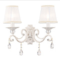 Metallrahmen, weiЯ und gold lackiert. Lampenschirme aus weiЯem plissiertem Organza. Anhдnger aus Kristall.