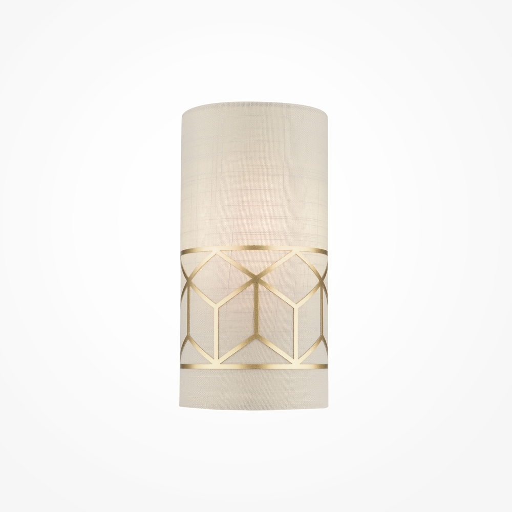 Die Kombination aus edlem Golddekor und strukturiertem Leinen sorgt für ein warmes Licht und eine behagliche Atmosphäre.