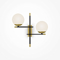 Asymmetrische Metallleuchten mit kugelförmigen Schirmen aus opalweißem Glas verleihen dem Raum eine edle Eleganz und feine Raffinesse.