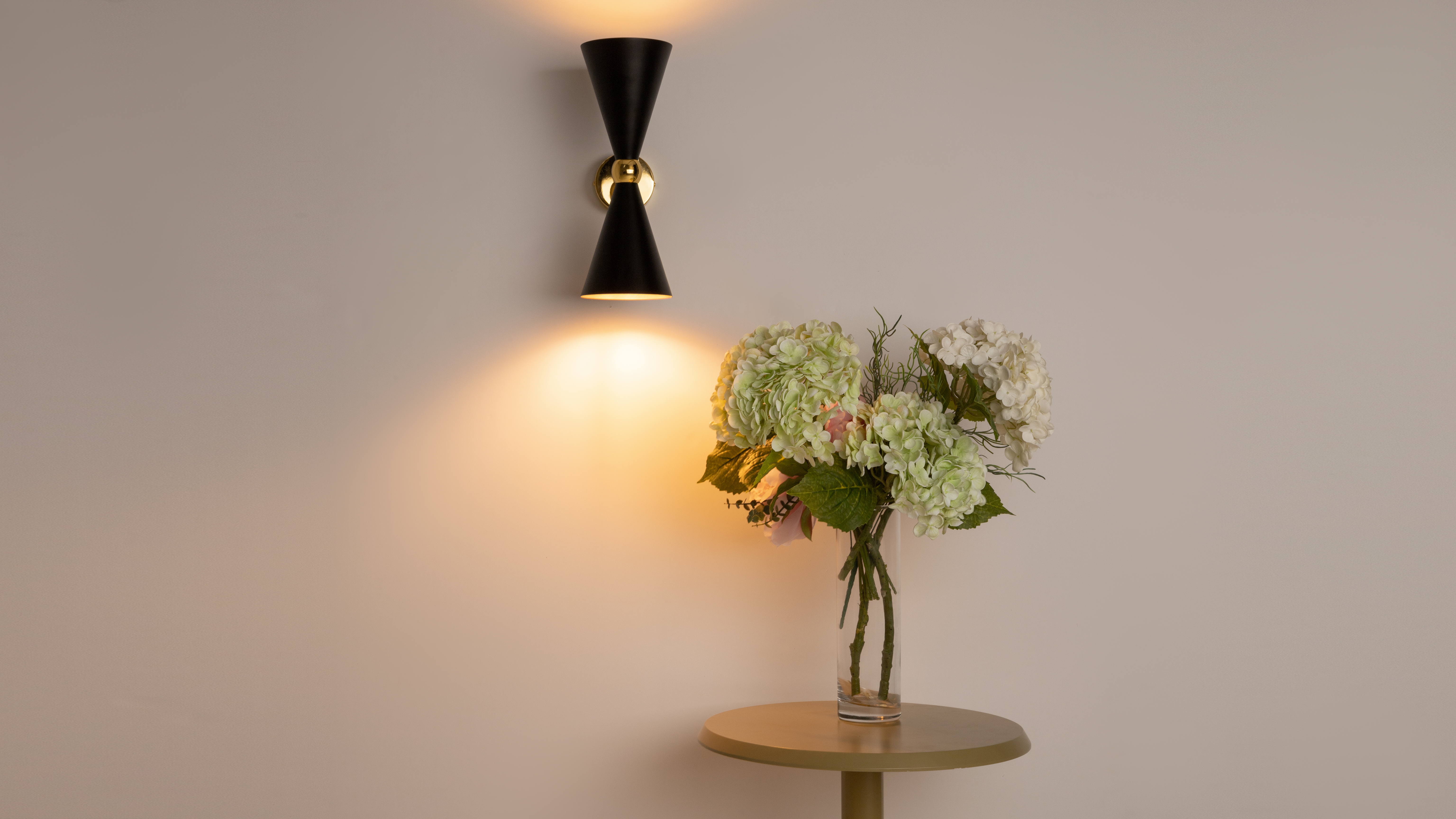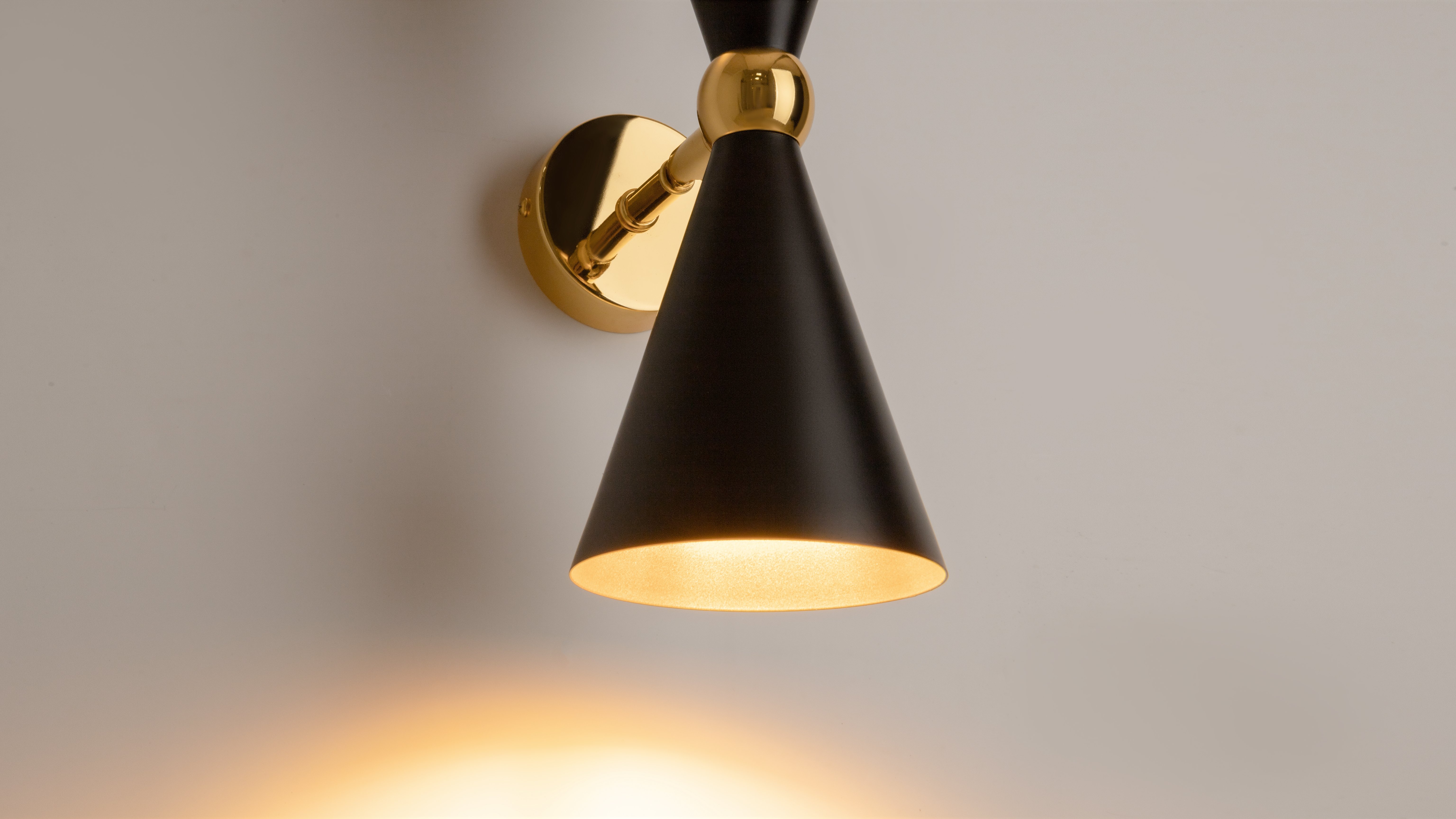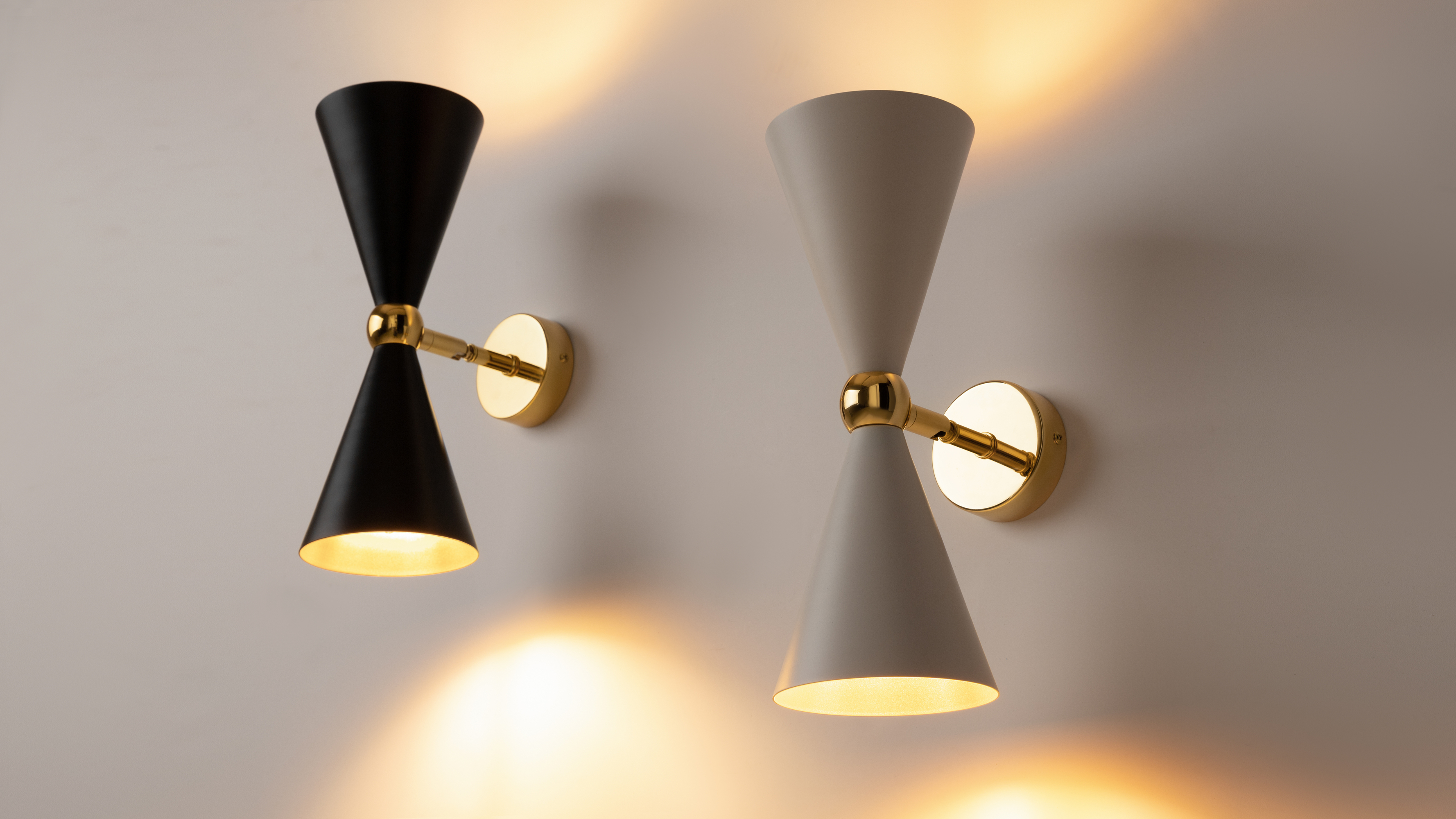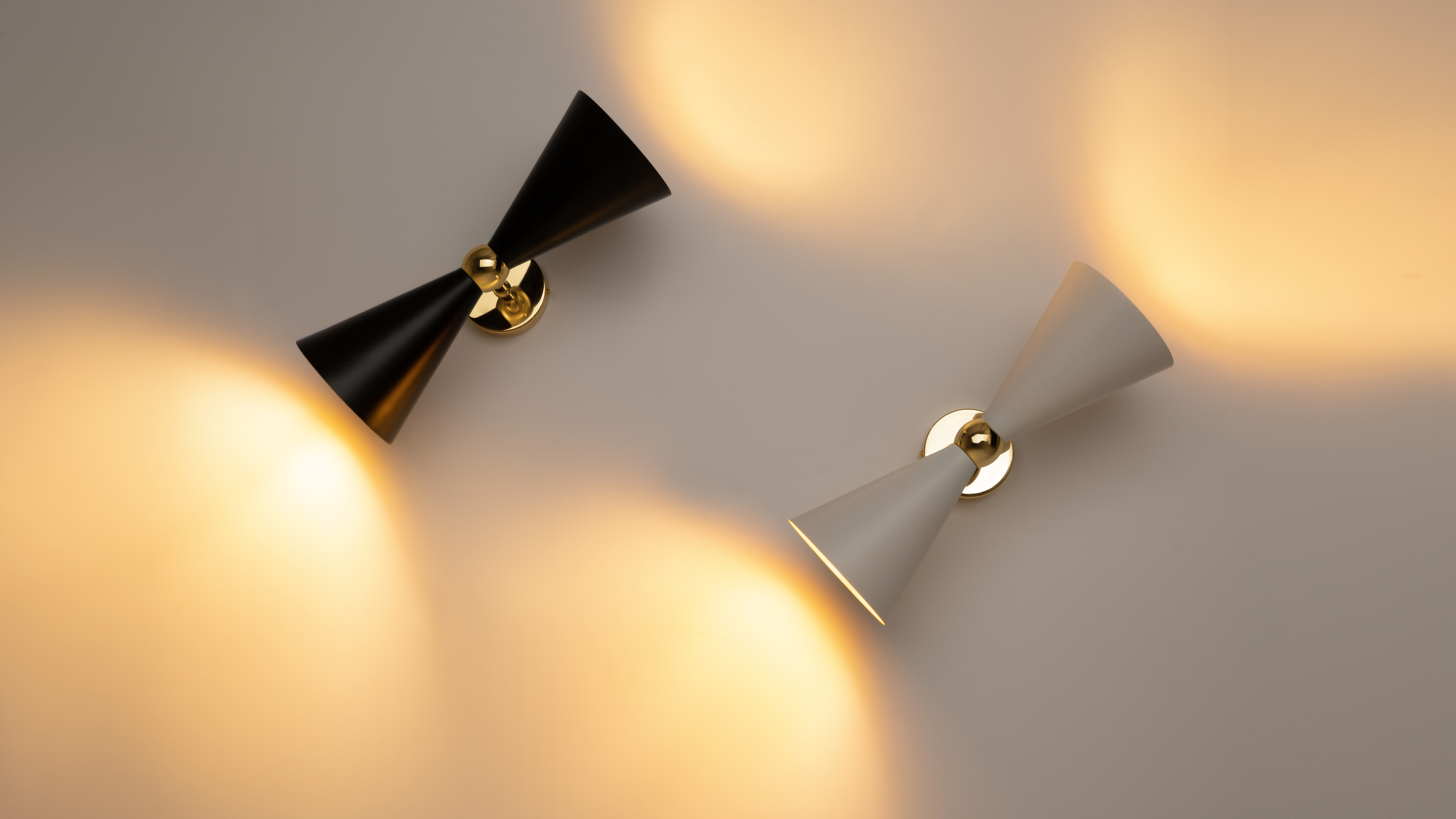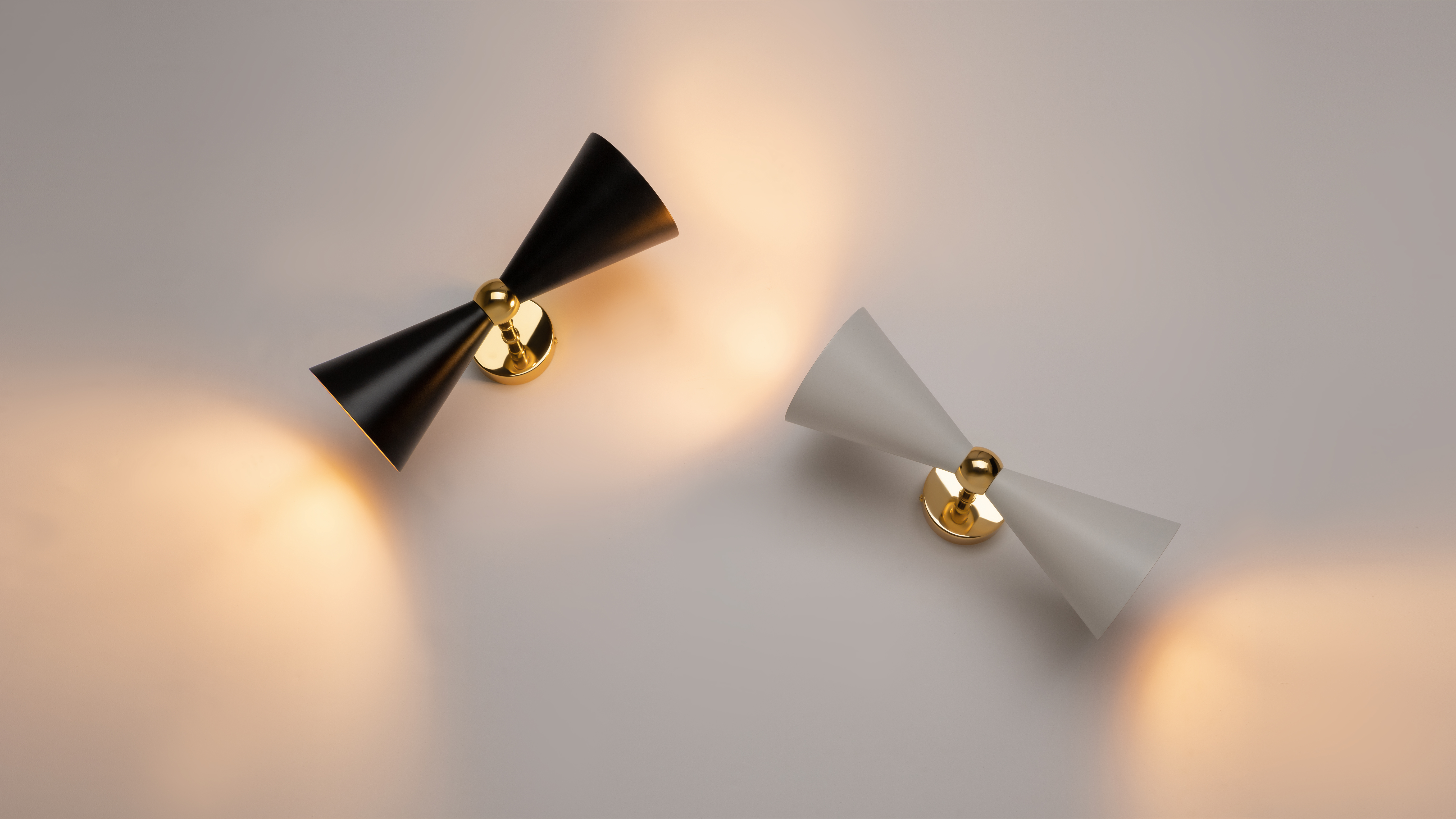Die Serie Vesper ist in zwei Farbvarianten erhältlich – Schwarz und Weiß – und lässt sich so mühelos in jedes Interieur integrieren. Die goldene Innenfläche der Schirme verleiht den Leuchten eine edle Note und sorgt für ein weiches, warmes Licht, das die Eleganz des Designs unterstreicht