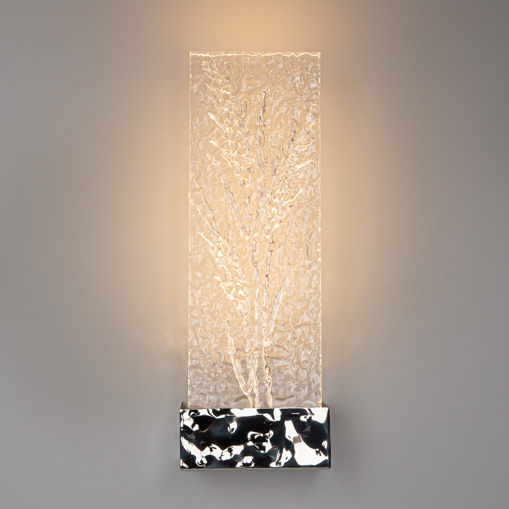 Jede Wandleuchte dieser Kollektion ist ein kleines Kunstwerk: filigrane botanische Muster verschmelzen mit sanft gewellten Oberflächen, die an Wasserbewegungen erinnern.