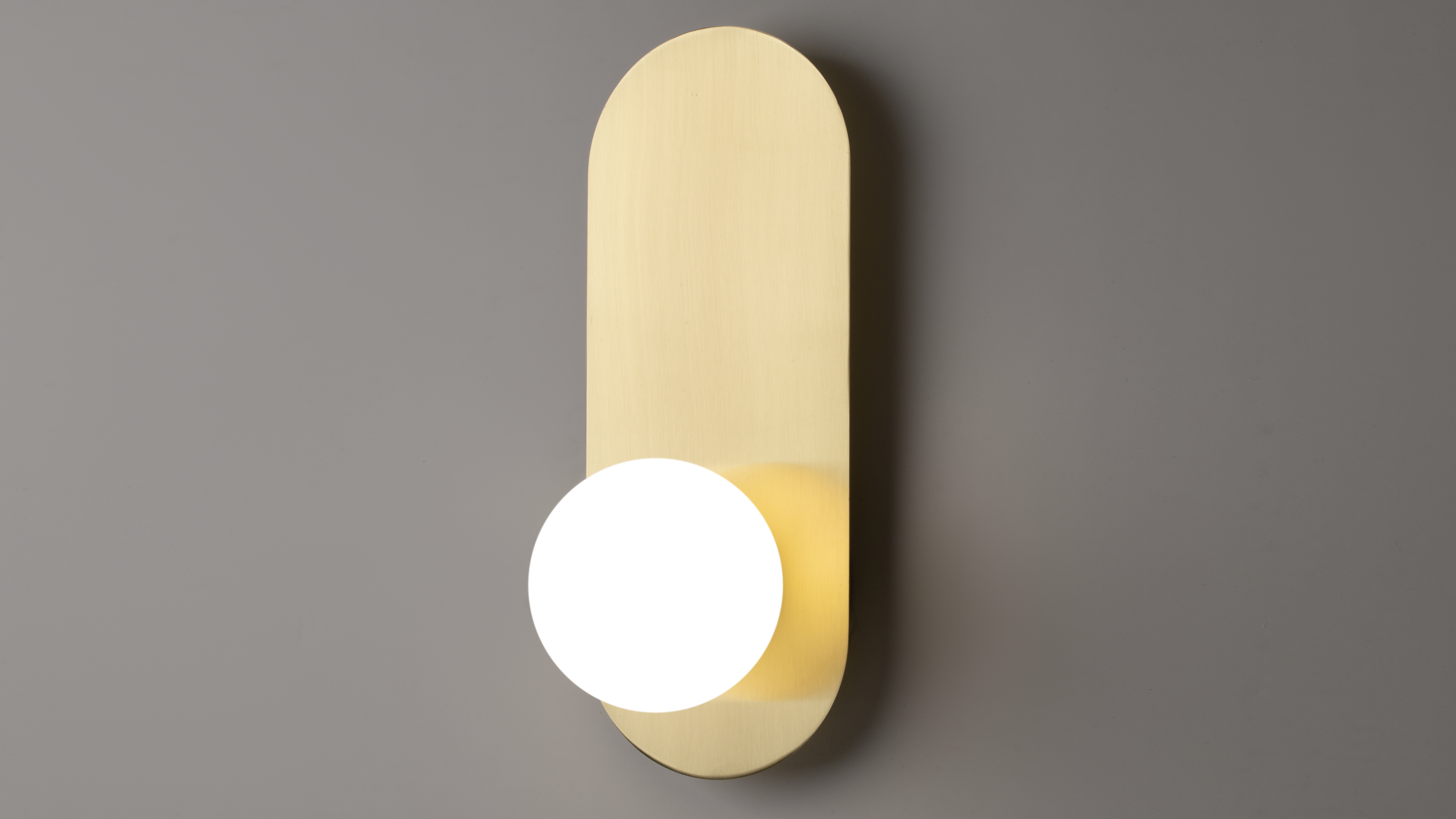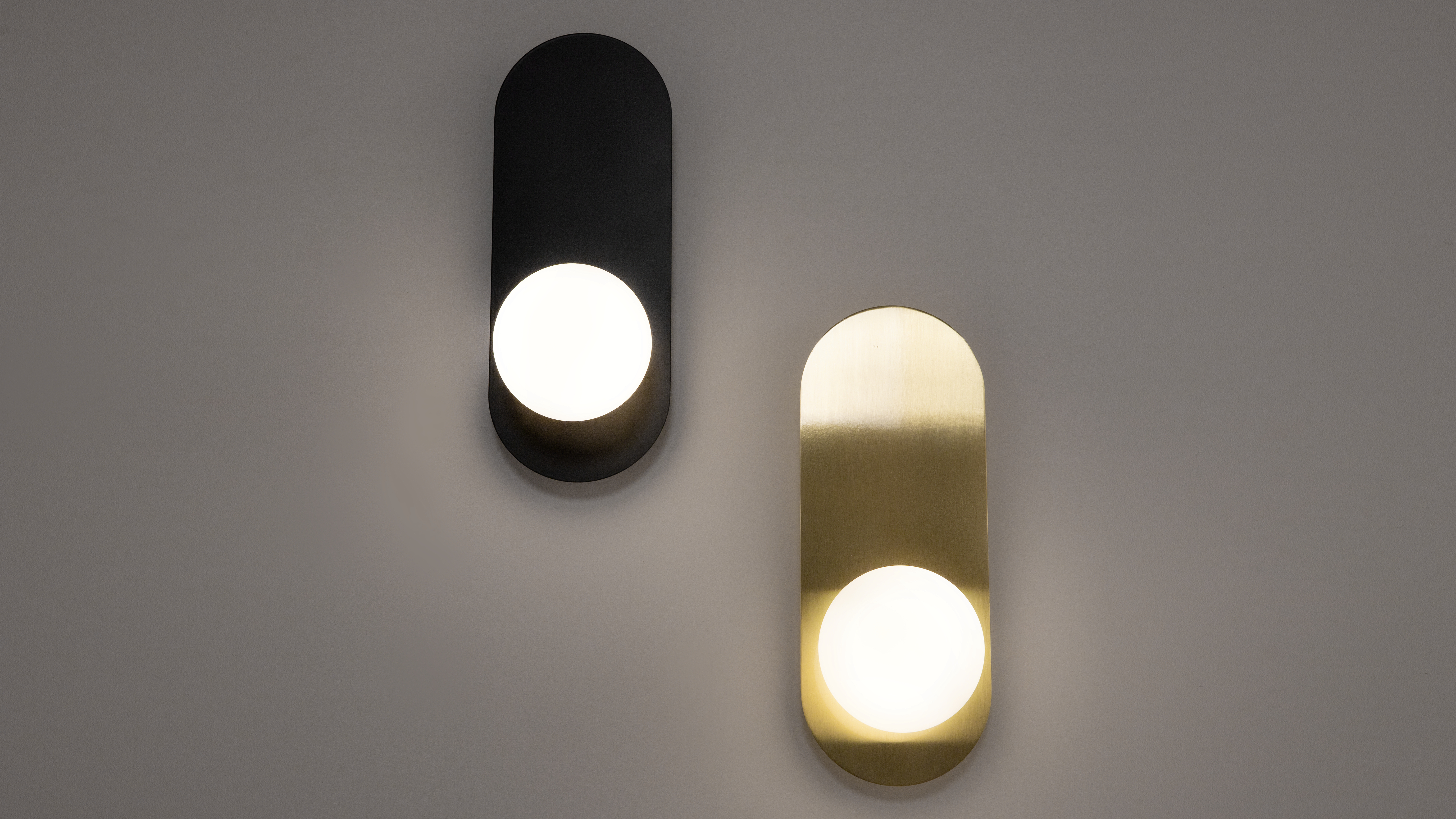 Die kleinen runden Lampenschirme aus weißem Milchglas und der schlanke ovale Metallsockel sind ästhetisch ansprechend, lakonisch und funktional zugleich.
