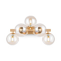 Auf polierten Metallarmen sind getönte Lampenschirme angebracht, die das Licht sanft streuen und dämpfen. Zudem sind die Schirme auch in transparenter Ausführung erhältlich.