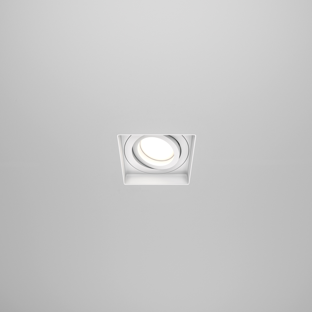 Einbaudownlight, verstellbar um 25°. Pulverbeschichteter Korpus aus Metall.