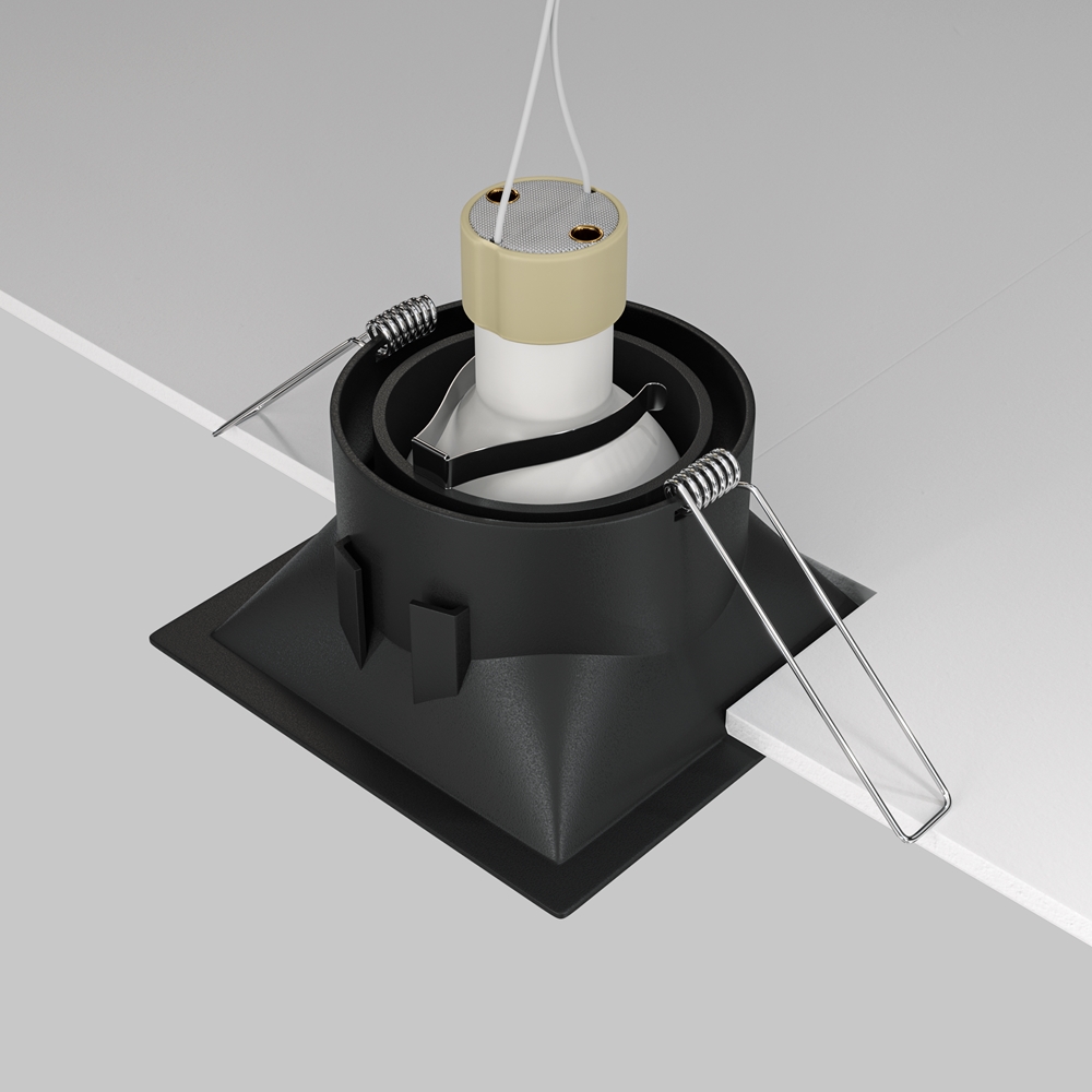 Rahmen aus Aluminium. Schwenkvorrichtung zur Einstellung des Lichtstroms. Lichtquelle: Ein Leuchtmittel mit einer Fassung GU10 (nicht im Lieferumfang enthalten).
