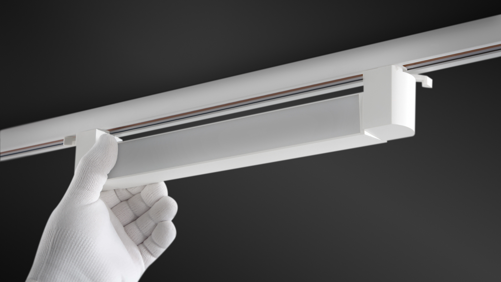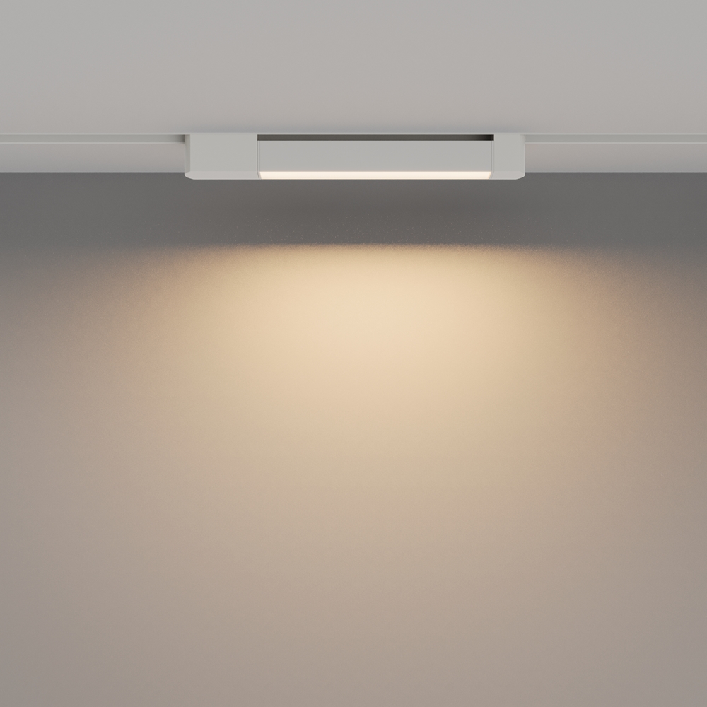Die Schienenleuchte Basis Rot ist eine moderne Beleuchtungslösung mit elegantem Aluminiumgehäuse, erhältlich in Schwarz und Weiß.