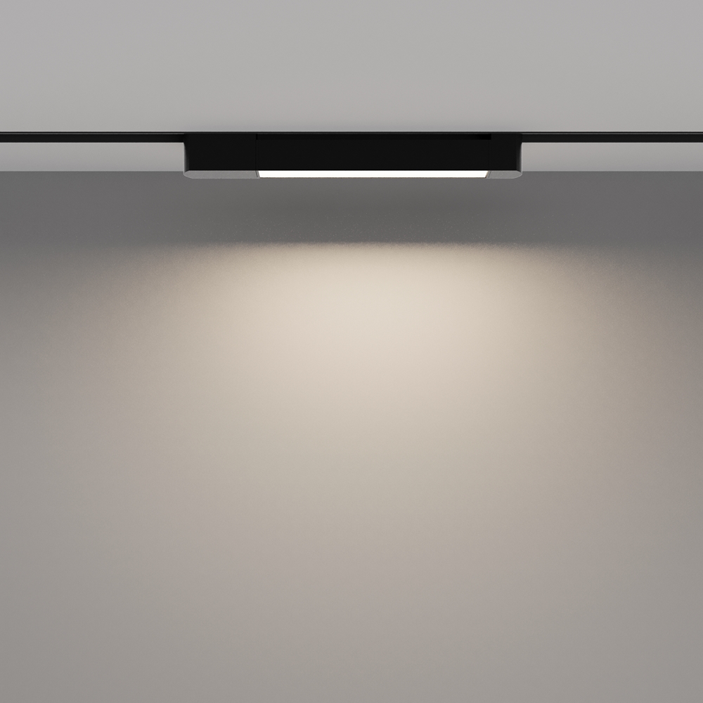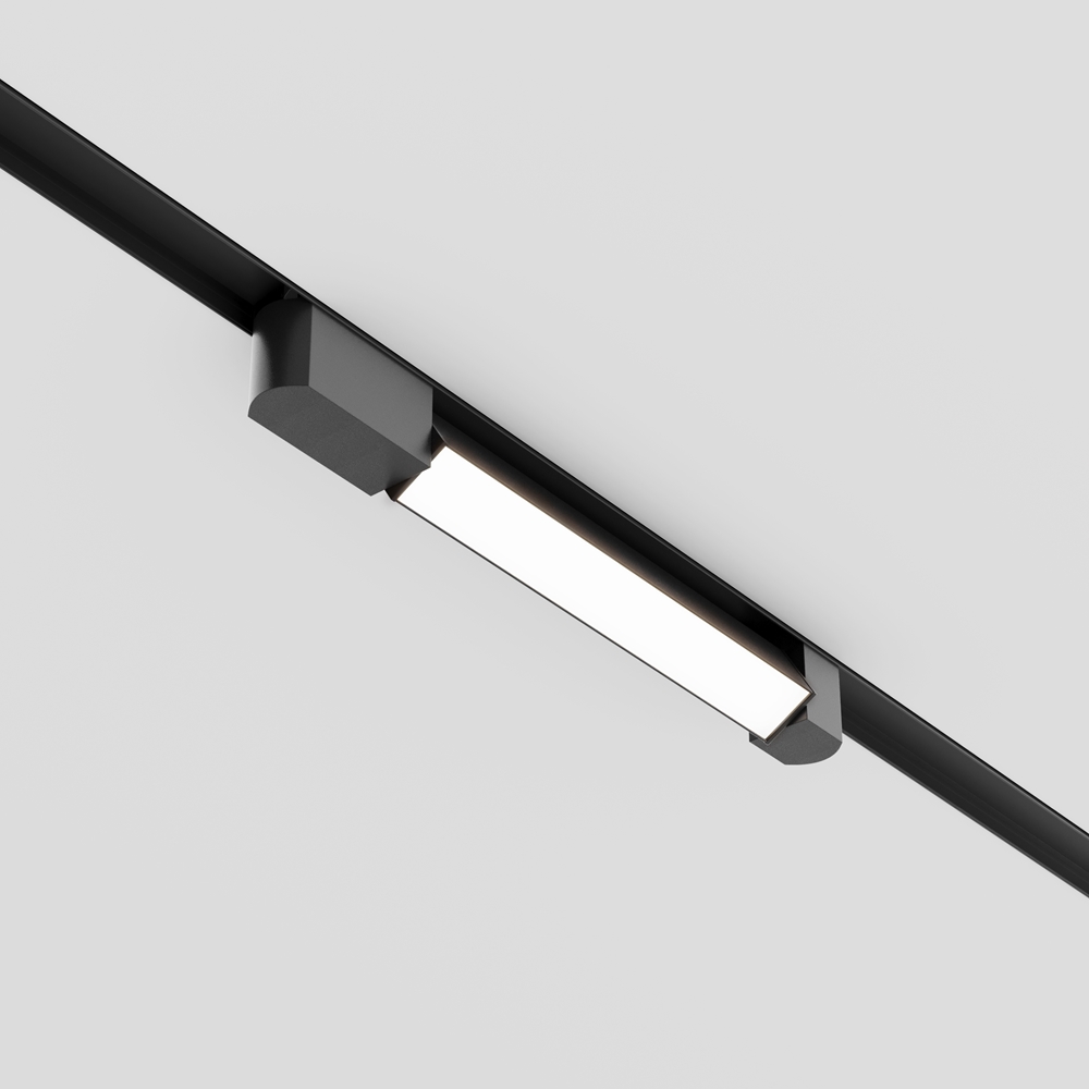 Die Schienenleuchte Basis Rot ist eine moderne Beleuchtungslösung mit elegantem Aluminiumgehäuse, erhältlich in Schwarz und Weiß.