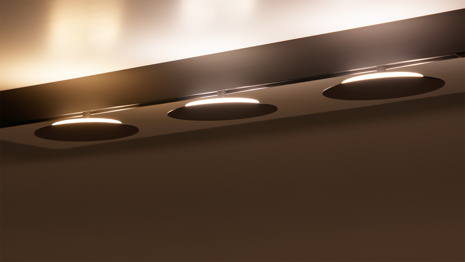 Die Schienenleuchte Relax ist eine stilvolle, scheibenförmige Aluminiumleuchte, die für eine sanfte Beleuchtung konzipiert wurde.