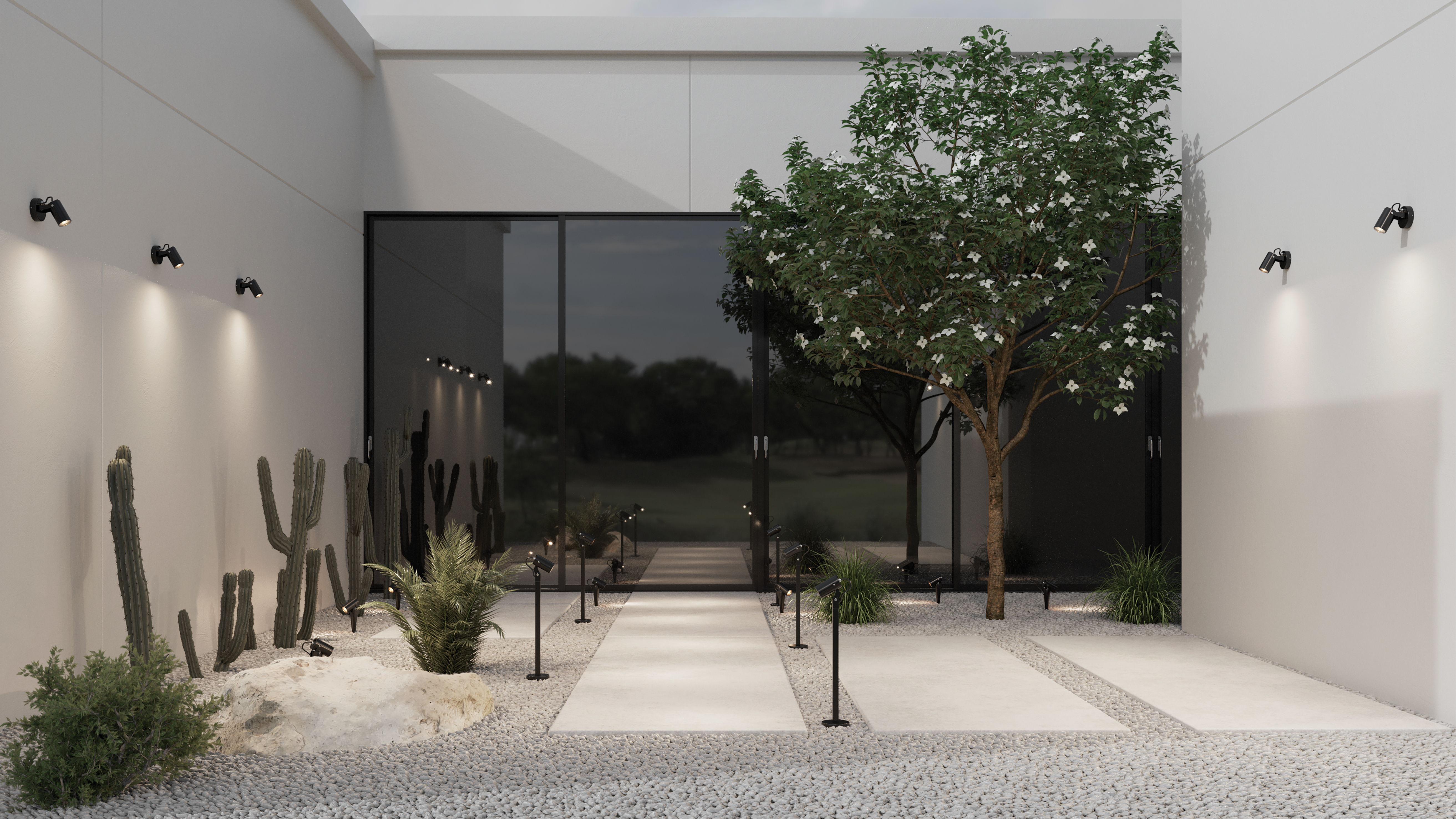 Scheinwerfer für Landschafts- und Architekturbeleuchtungen. Durch das Design der Halterung lässt sich die Ausrichtung des Lichtstroms horizontal und vertikal einstellen. Das Gehäuse ist aus einer temperatur- und korrosionsbeständigen Aluminiumlegierung gefertigt und schwarz pulverbeschichtet. Im Lieferumfang enthalten sind ein Erdungsstift und eine Klemmleiste, die die Anforderungen der Schutzklasse IP65 erfüllt.
