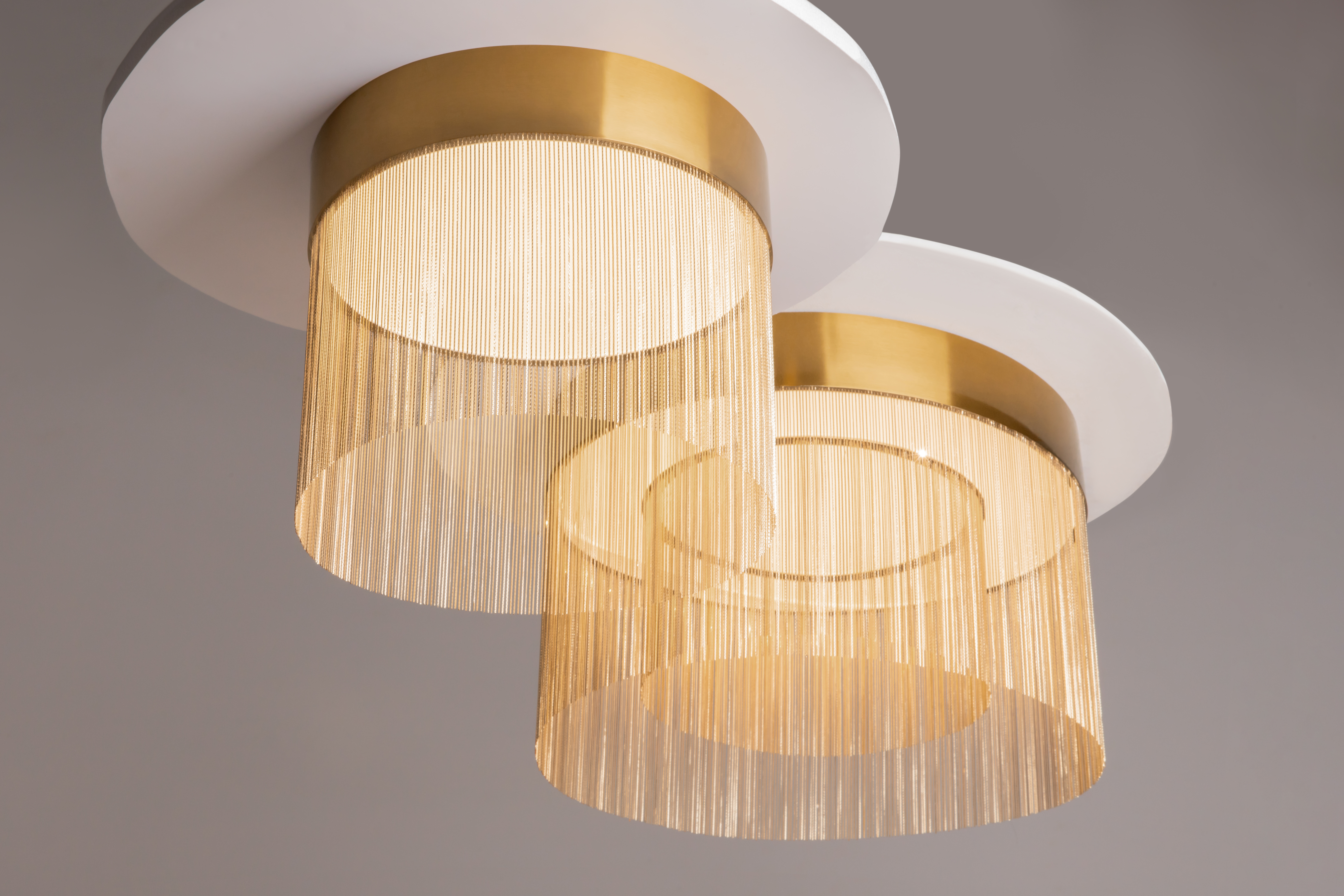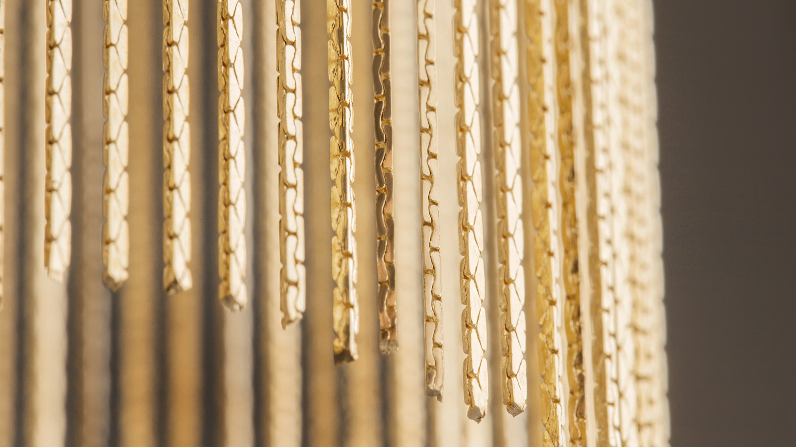 The lavish chain décor, reminiscent of jewelry craftsmanship, defines the collection’s distinctive character, blending harmoniously with the fixtures’ understated shapes.