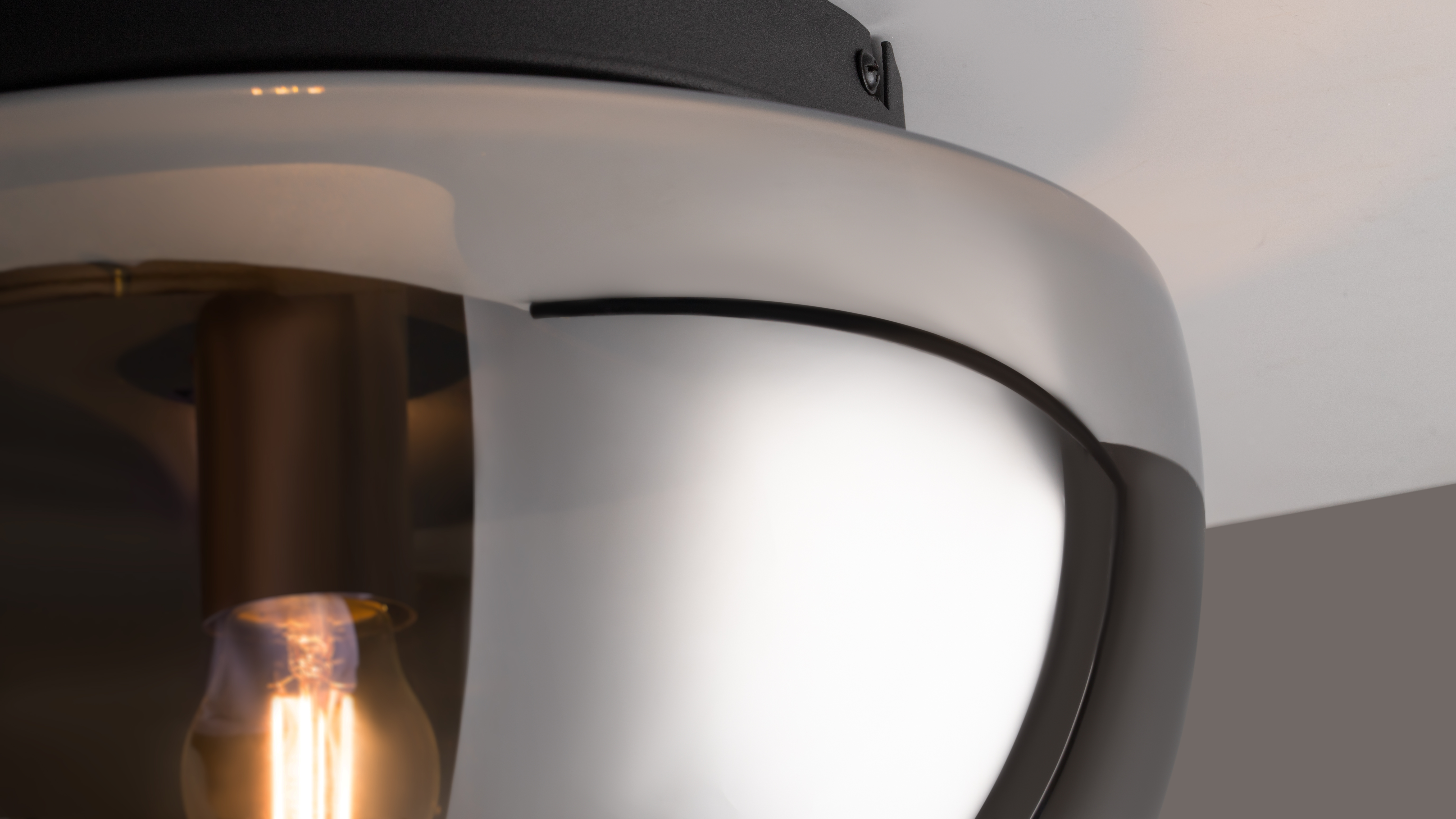 Despite their minimalism, the Glassy ceiling luminaires are not mere light sources. Since ancient times, high-quality glass has been considered a treasure, and in some cases, a relic and even an object of worship. These streamlined glass luminaires fit into a modern interior easily and neatly, giving it an air of comfort. E27 bulb. This series is presented in two colors: smoky black with black fittings and white matte with gold fittings.