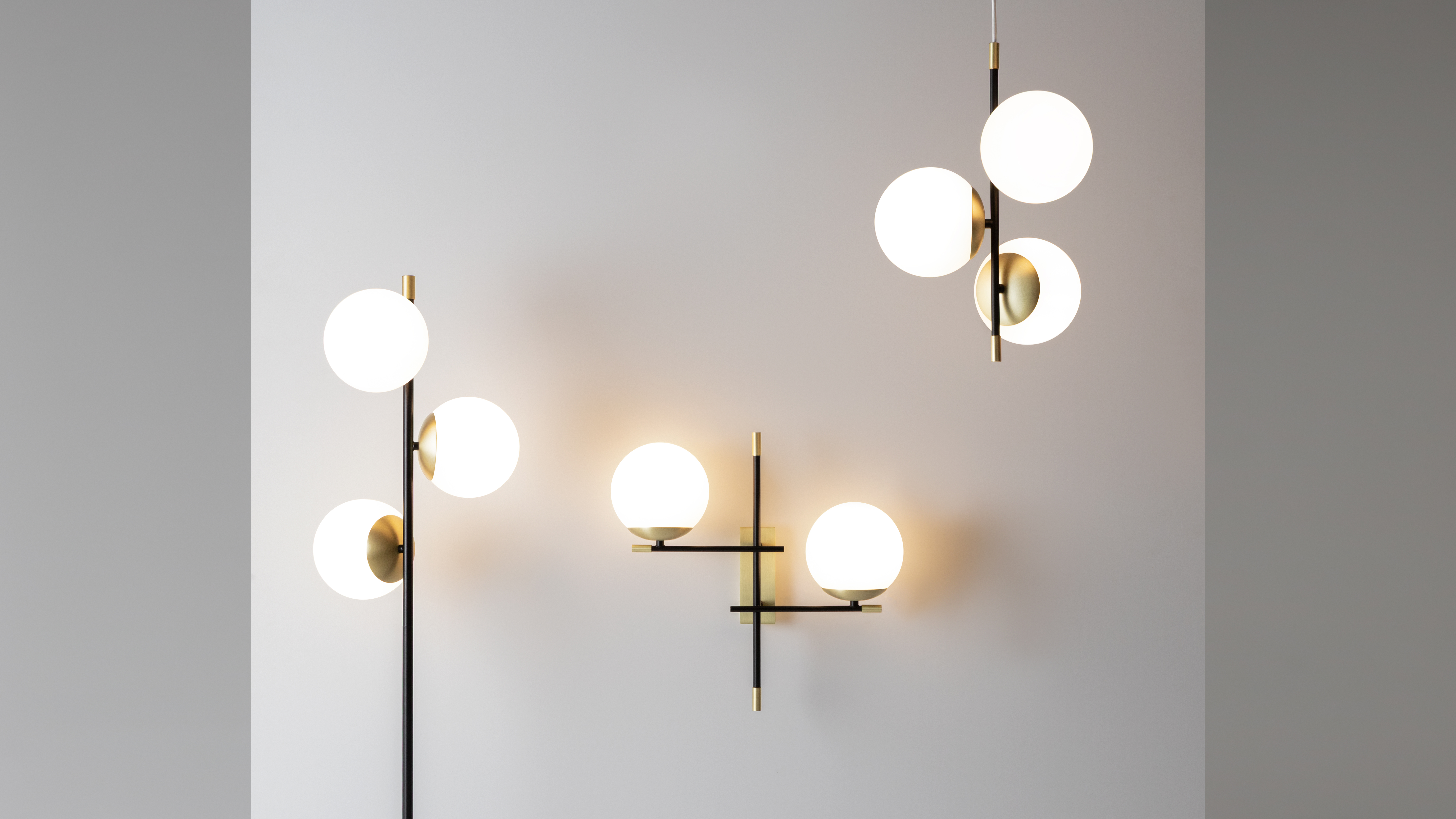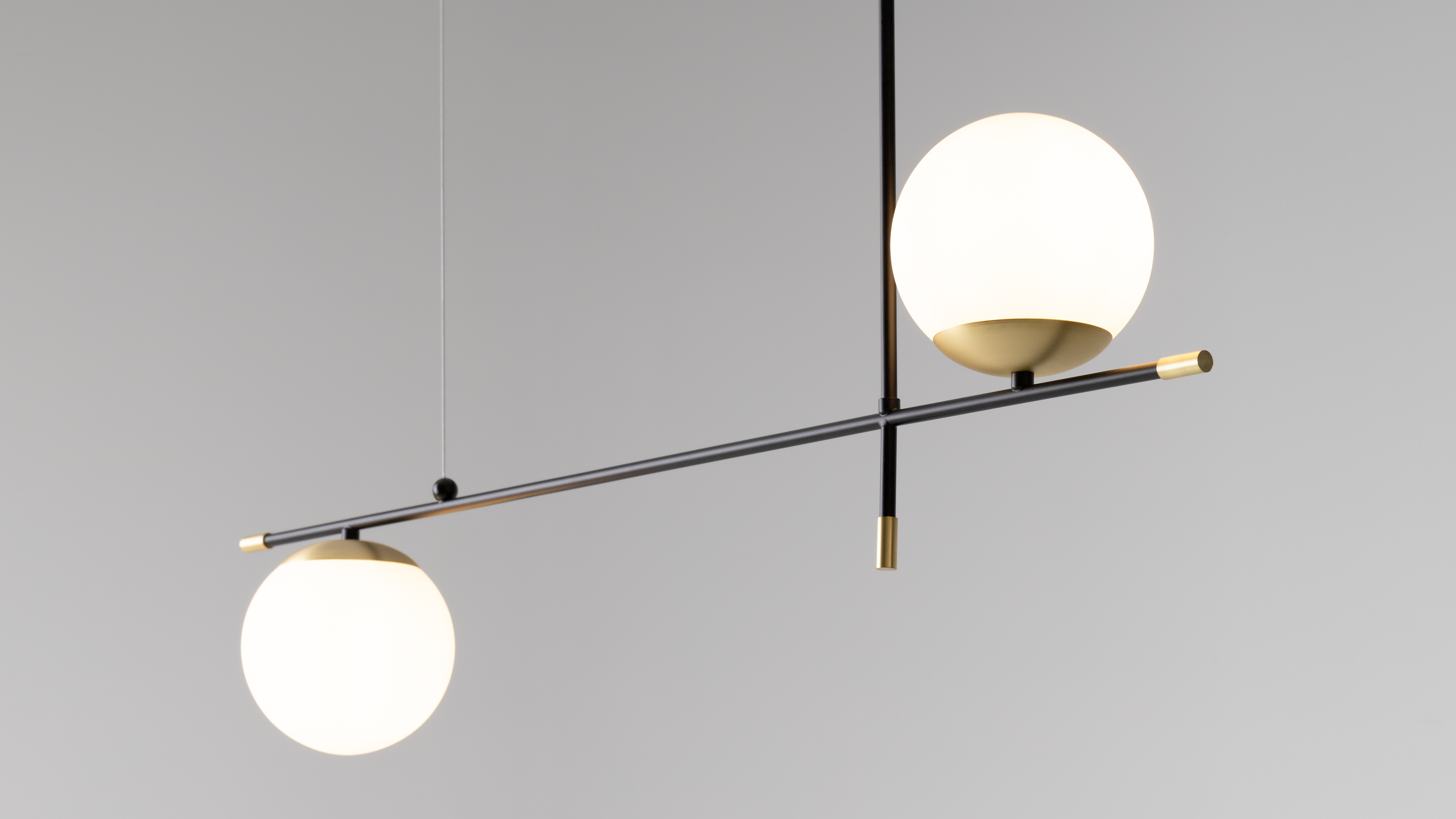 These asymmetrical metal fixtures with opal glass globe shades bring refined elegance and grace to modern interiors. The smooth lines and delicate forms create an atmosphere of sophisticated comfort. The classic pairing of matte gold and white offers a harmonious balance that fits effortlessly into both minimalist and traditional settings.
