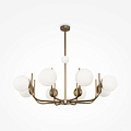 Inspired by mid-century aesthetics, the luminaire combines classic elements with contemporary trends. The vivid brass frame and rounded glass shades create a playful yet elegant look that fits seamlessly into both minimalist and richly decorated interiors.