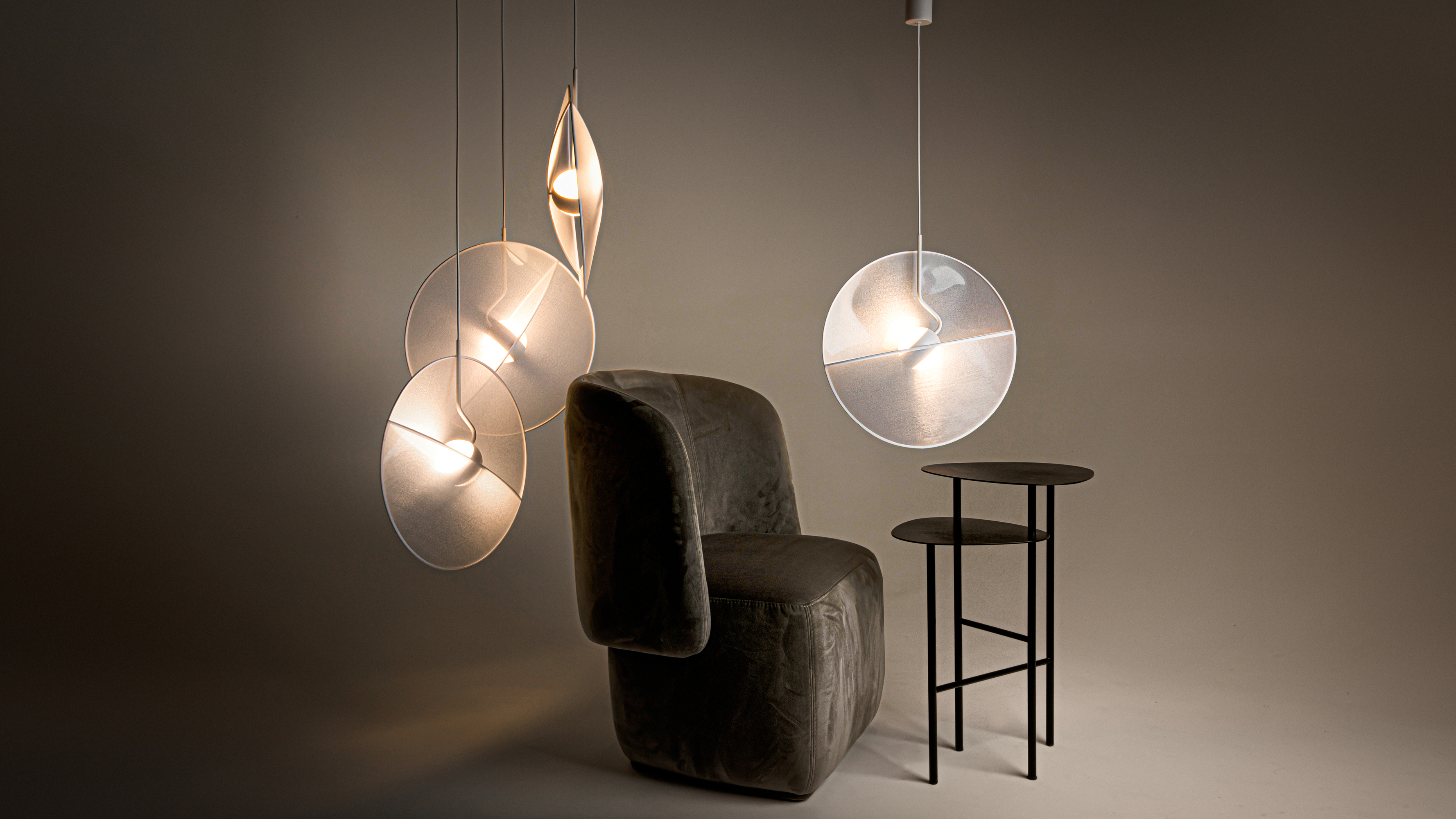 The design of the textile element allows for adjusting the light dispersion angle and creating a variety of compositional lines, supporting the overall interior design, from strict parallel lines to free, asymmetrical ones.