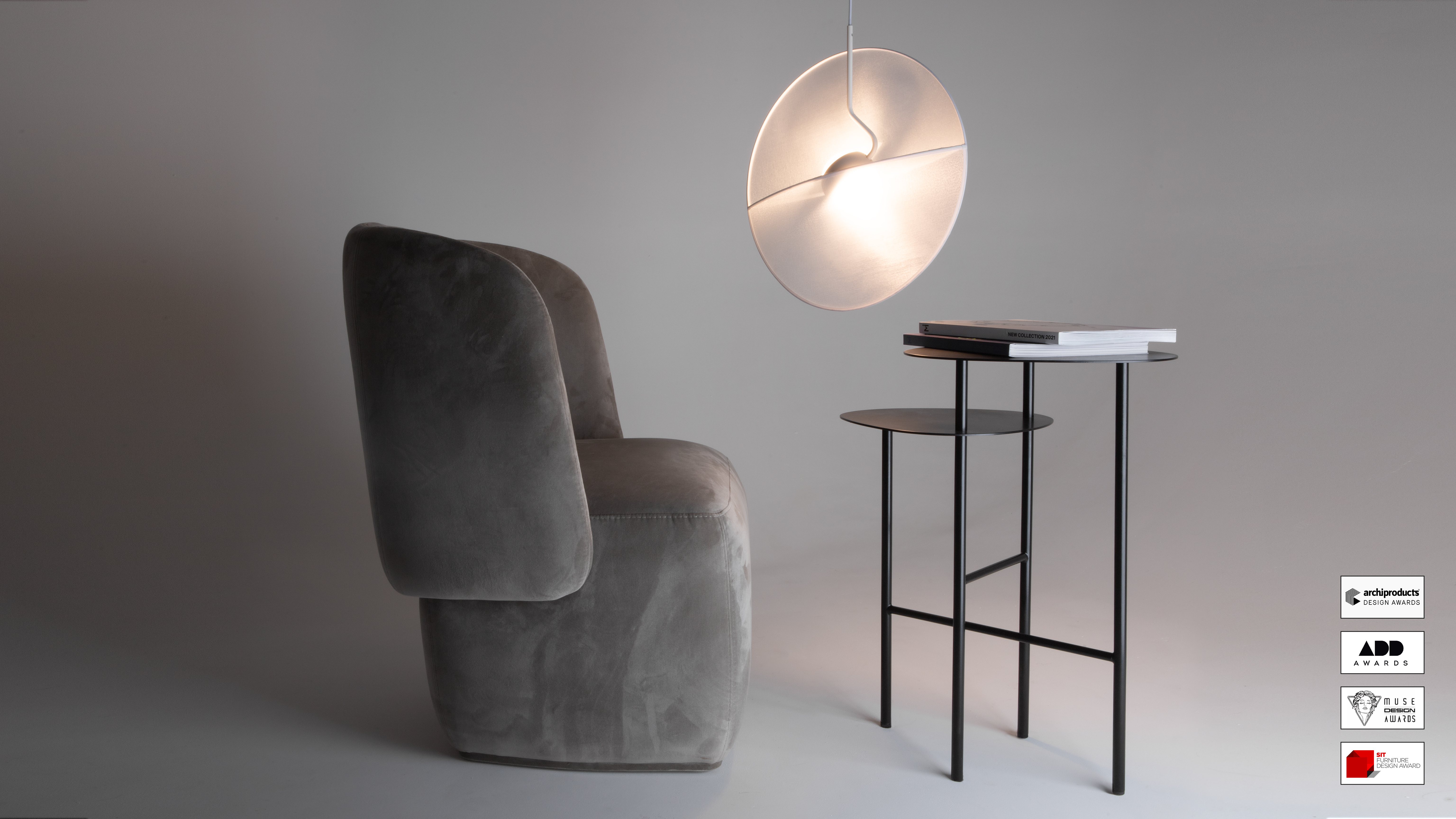 The lamp is outfitted with advanced lensed optics to provide a comfortable luminous flux and form a unique light pattern on the textile diffuser.