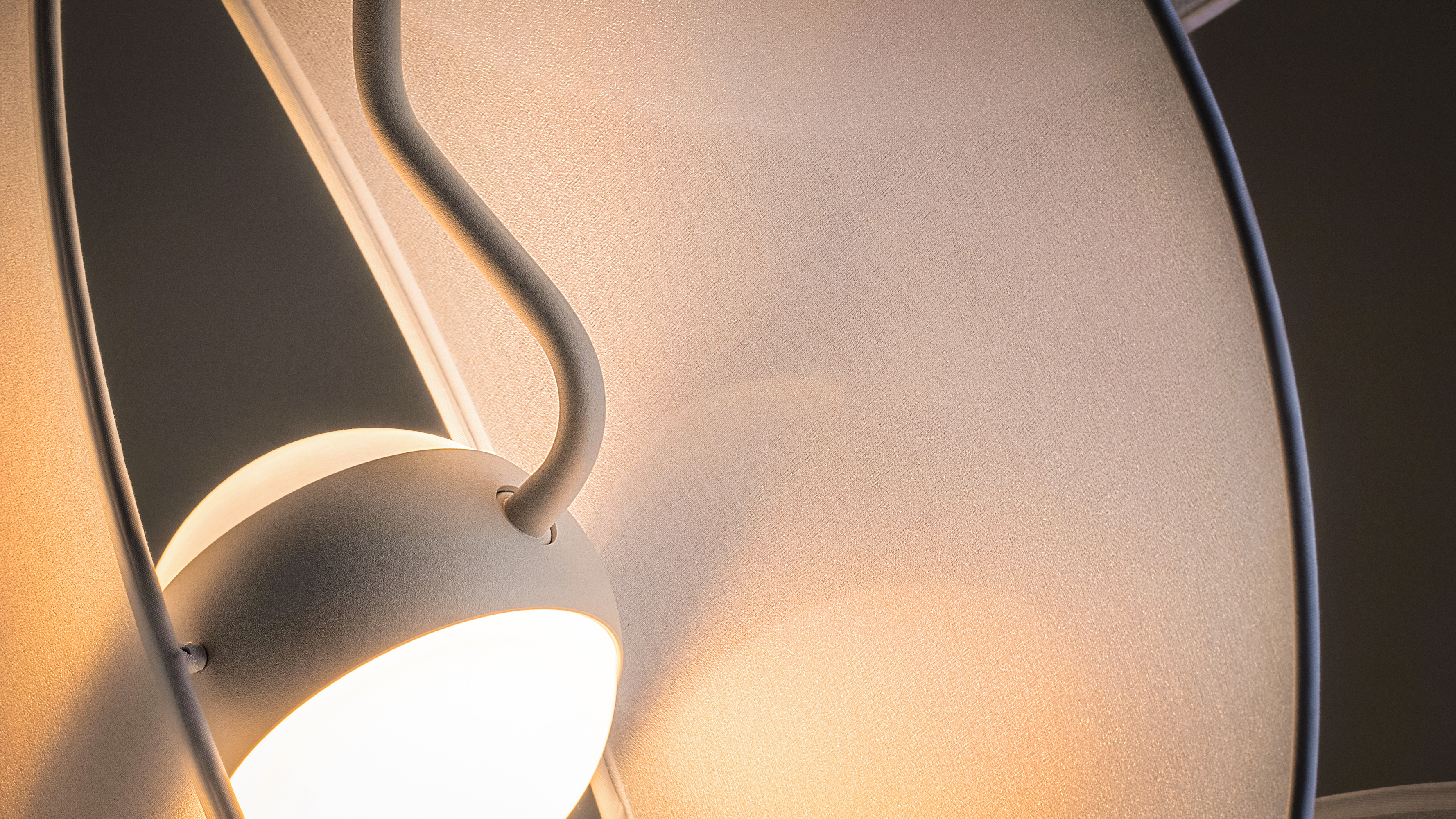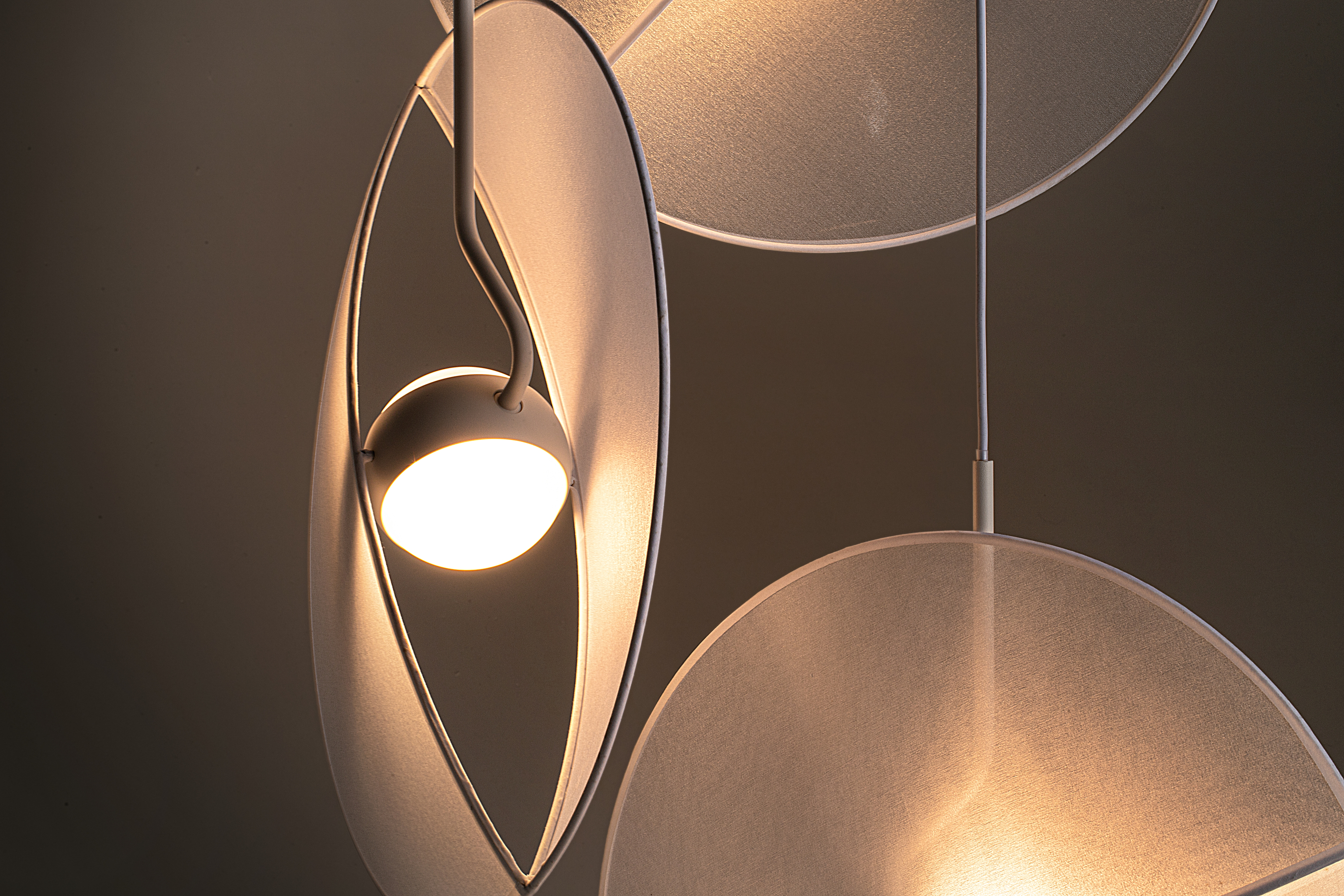The spectacular textile helps create an airy outline of the luminaire and adds a decorative depth thanks to a special weaving pattern. The fabric and diffuser design make the lamp easy to maintain and clean.