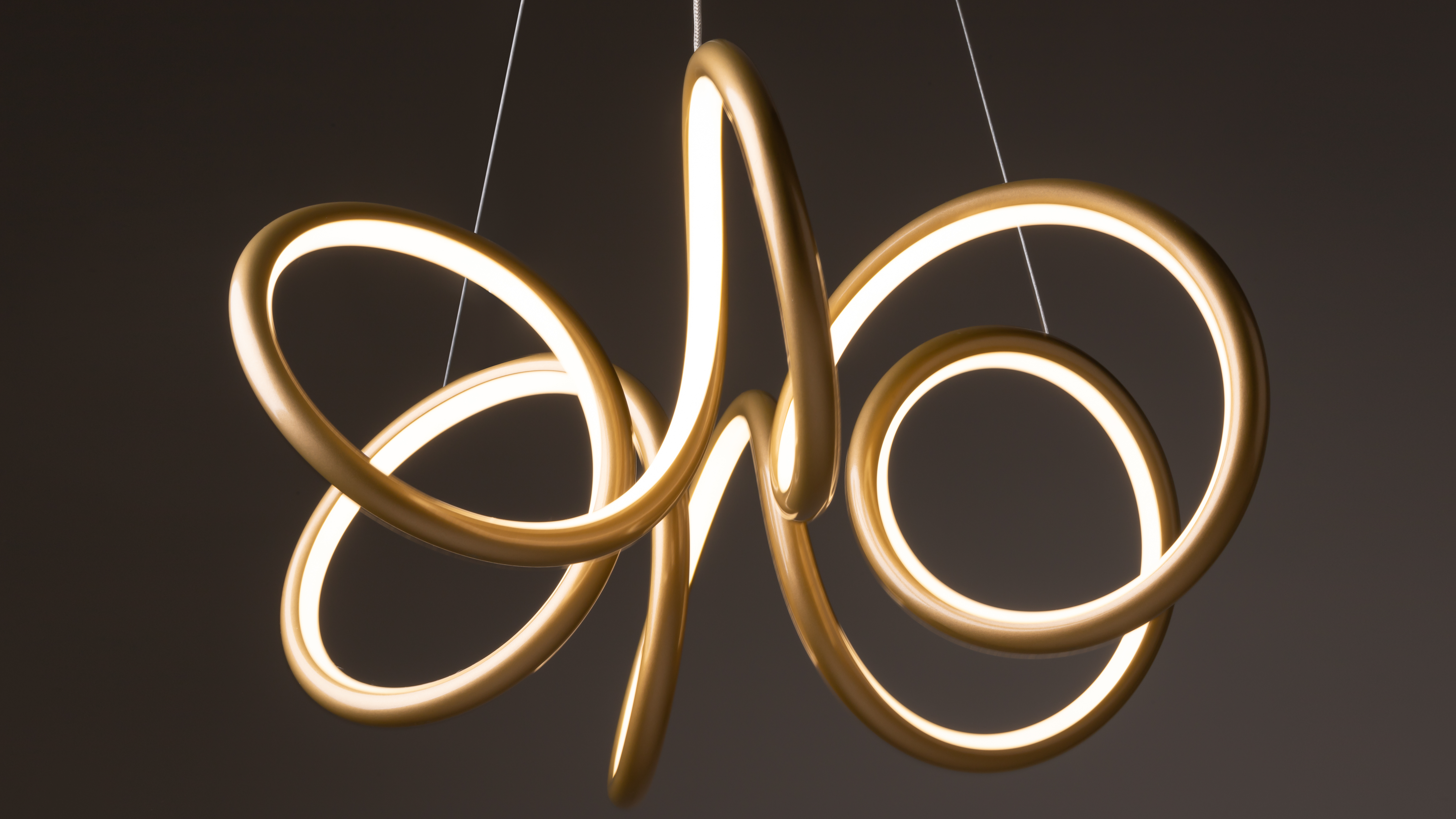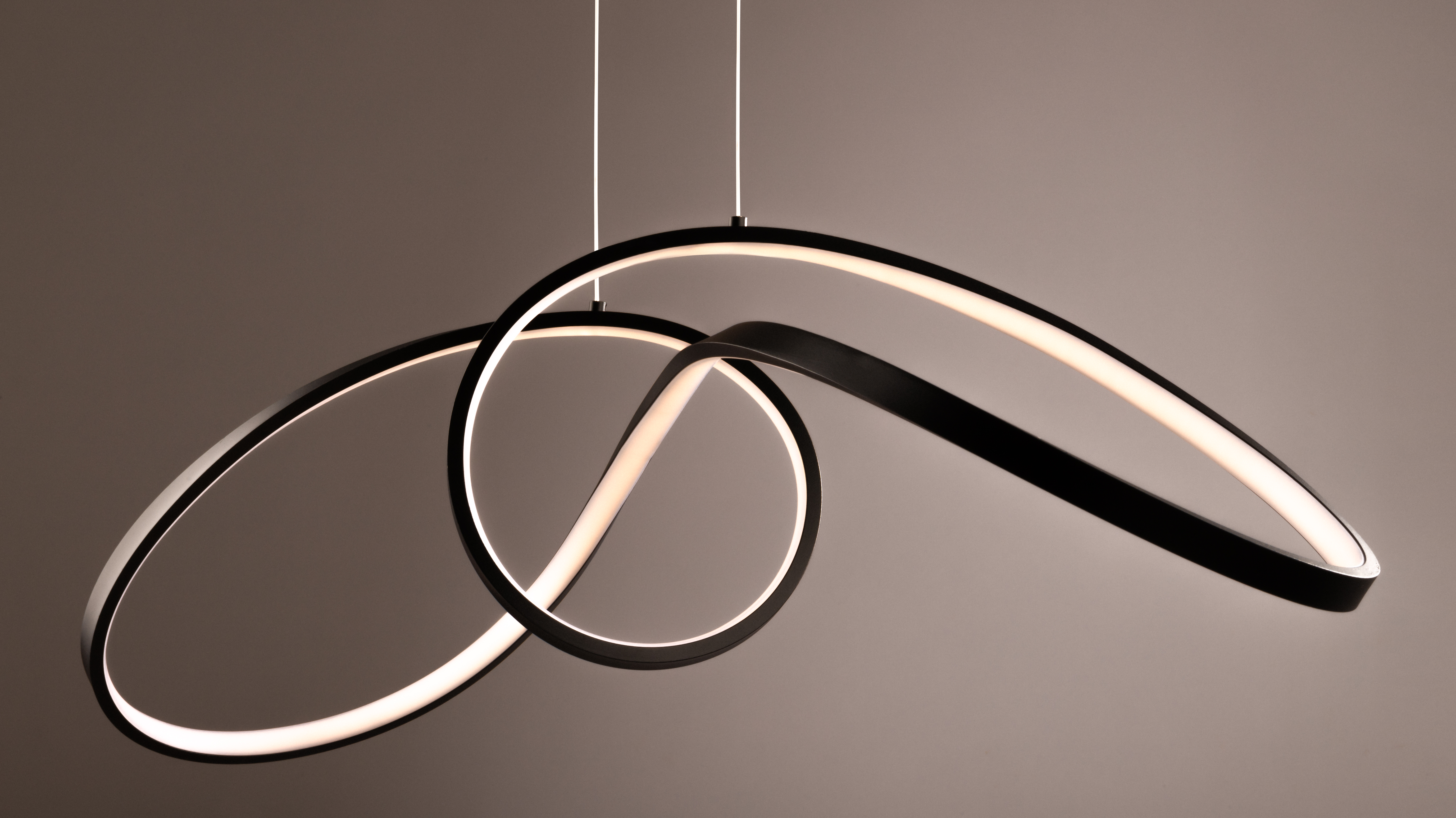 The unique contours of the Curve series luminaires create a dynamic moving light effect. Smooth, rounded lines and discreet cables give the illusion of weightless lights floating in the air.