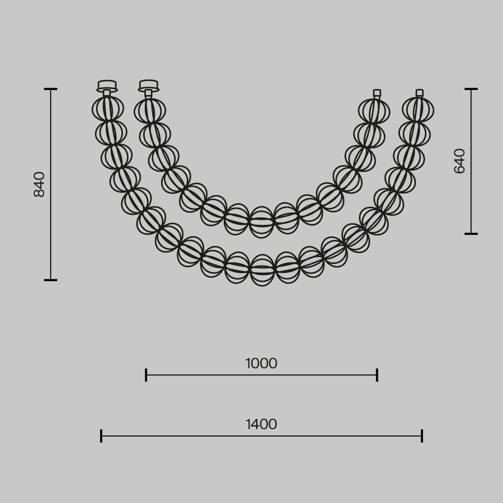 Luminaires in this series are made of flexible cord framed with decorative wire elements. This marks the first time such a combination is used in lamp design. The series harmoniously unites modern LED technology and handicraft. For two models, two mounting solutions are available: surface mounting (as in conventional chandeliers) or ceiling-hidden mounting. Additional components for each mounting solution are provided in the box.