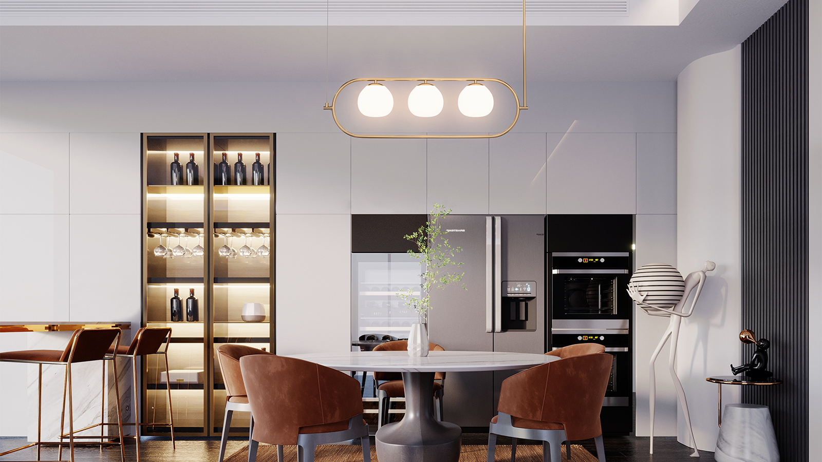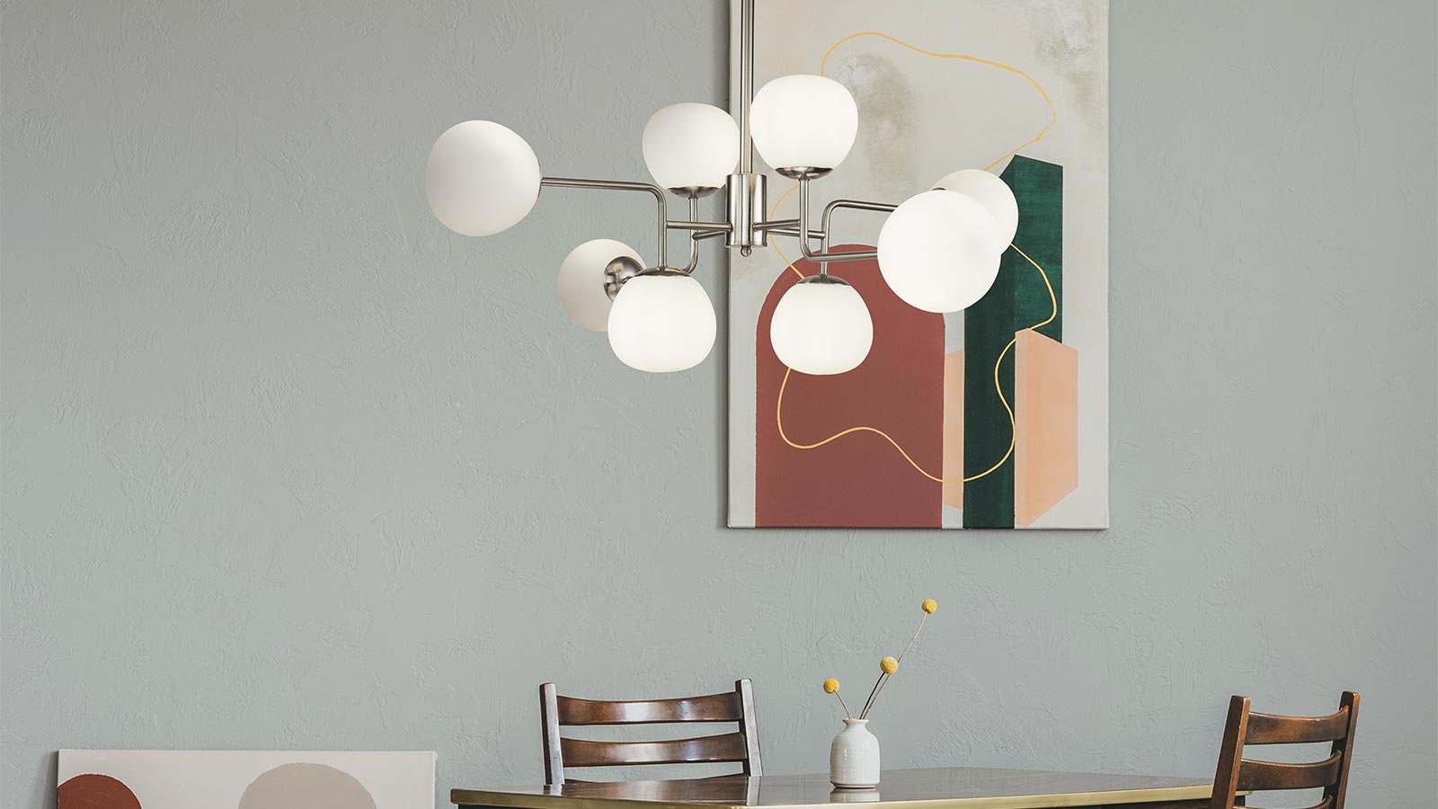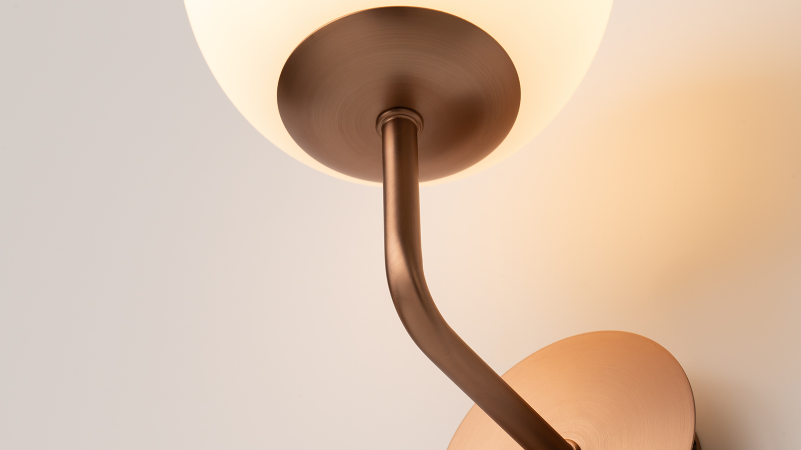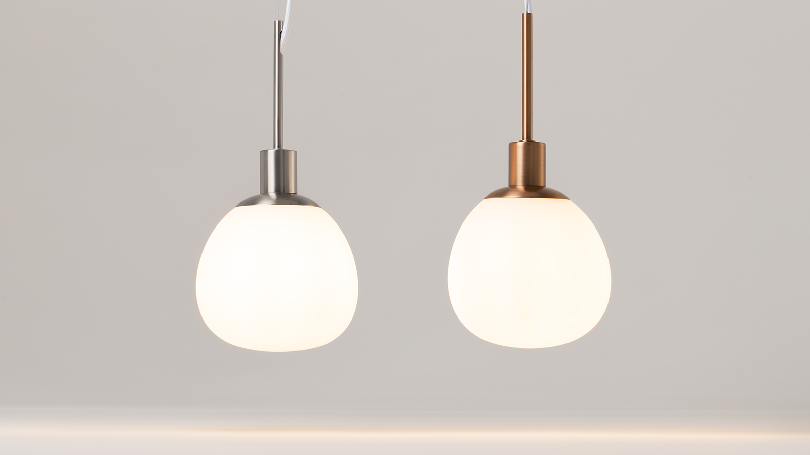 The blown white glass shades resemble luminous pearls encased in matte bronze or nickel-colored metal frames. The series offers a variety of models in different sizes and applications, suitable for both general and task lighting. Functional design allows for adjustable shade positioning on both the floor lamp and table lamp. The height of the pendants can be customized via the adjustable cables. Chandeliers feature a central rod composed of three sections, allowing height adjustments to suit any space. Ceiling-mounted models further expand the collection’s versatility, making it suitable for rooms with varying dimensions and ceiling heights.