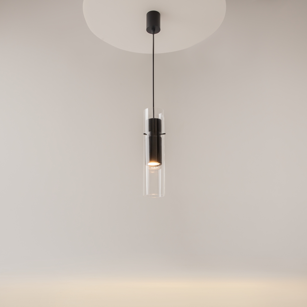The Dynamics collection is unified by its distinctive vertical linear ornamentation - a bold design trend in contemporary finishing materials. These luminaires perfectly complement such interiors or serve as elegant focal points in minimalist settings. The wall lamps feature a specially engineered, detail-free mounting system that ensures a clean, seamless installation. The pendants are enhanced with decorative glass elements, adding a touch of sophistication to the collection's geometric clarity.
