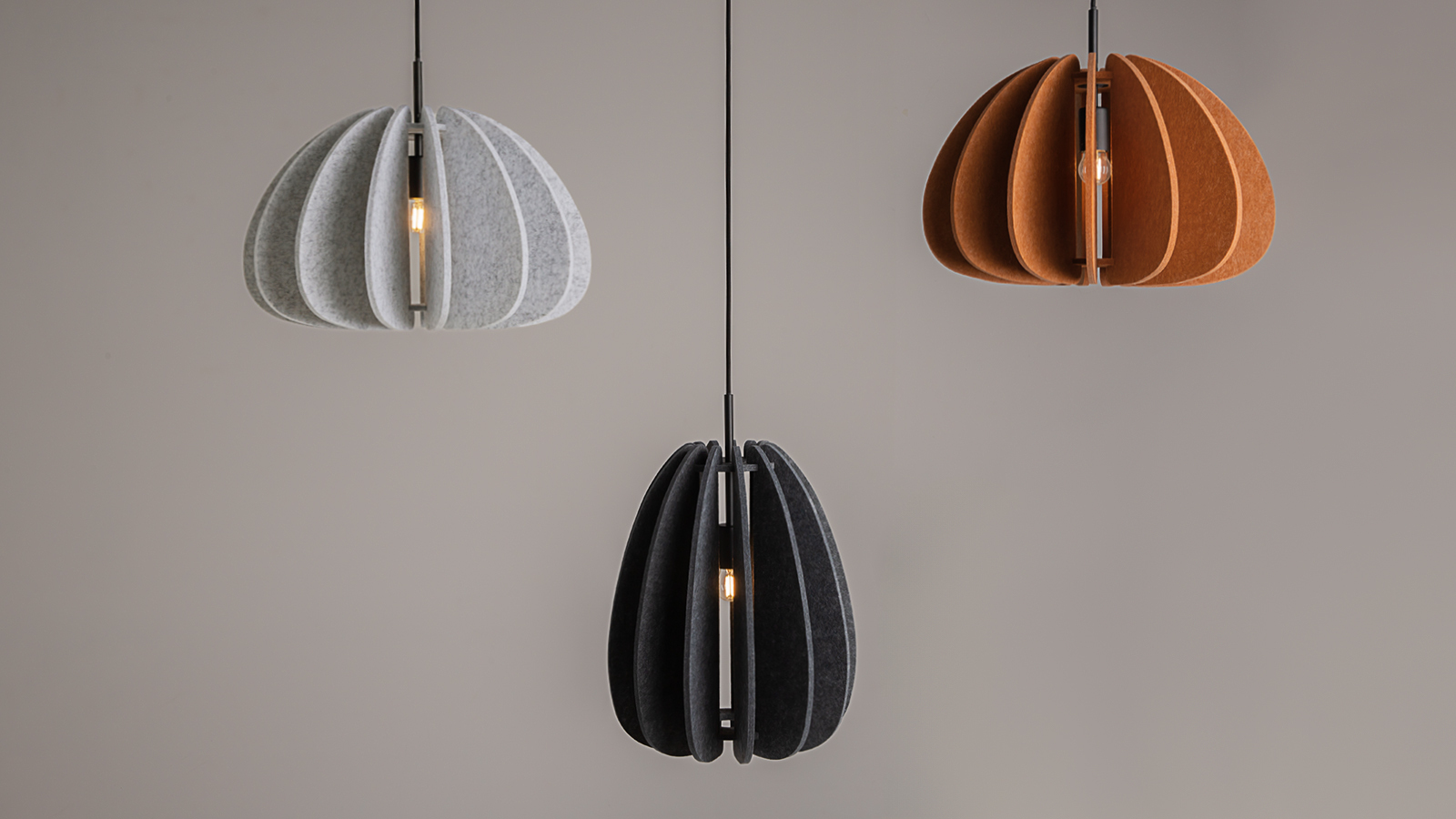 Inspired by the Italian word for “change,” the Cambio series reimagines the very concept of lighting. These innovative fixtures are not only sources of illumination but also elements of acoustic design. The natural felt lampshades provide soundabsorbing properties, enhancing the comfort of any space. Each fixture in the series is a creative transformer lampshades can be installed in two different ways, allowing for an effortless design transformation with a simple flip.