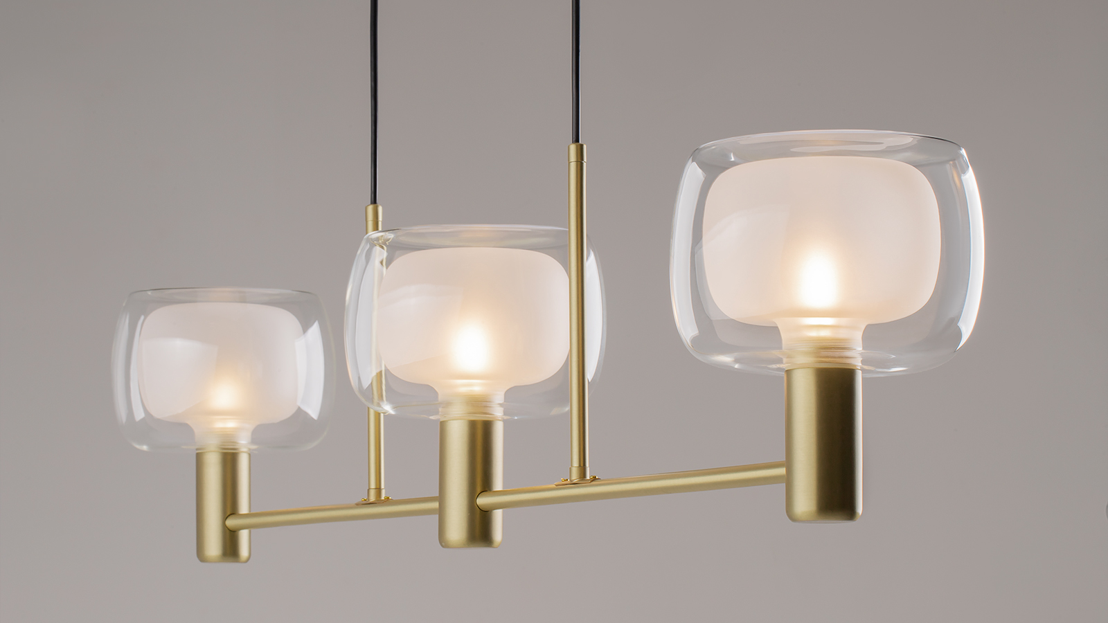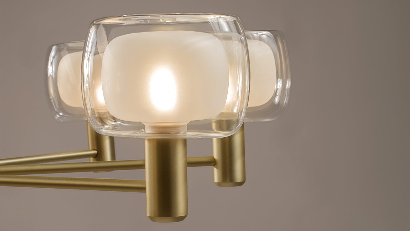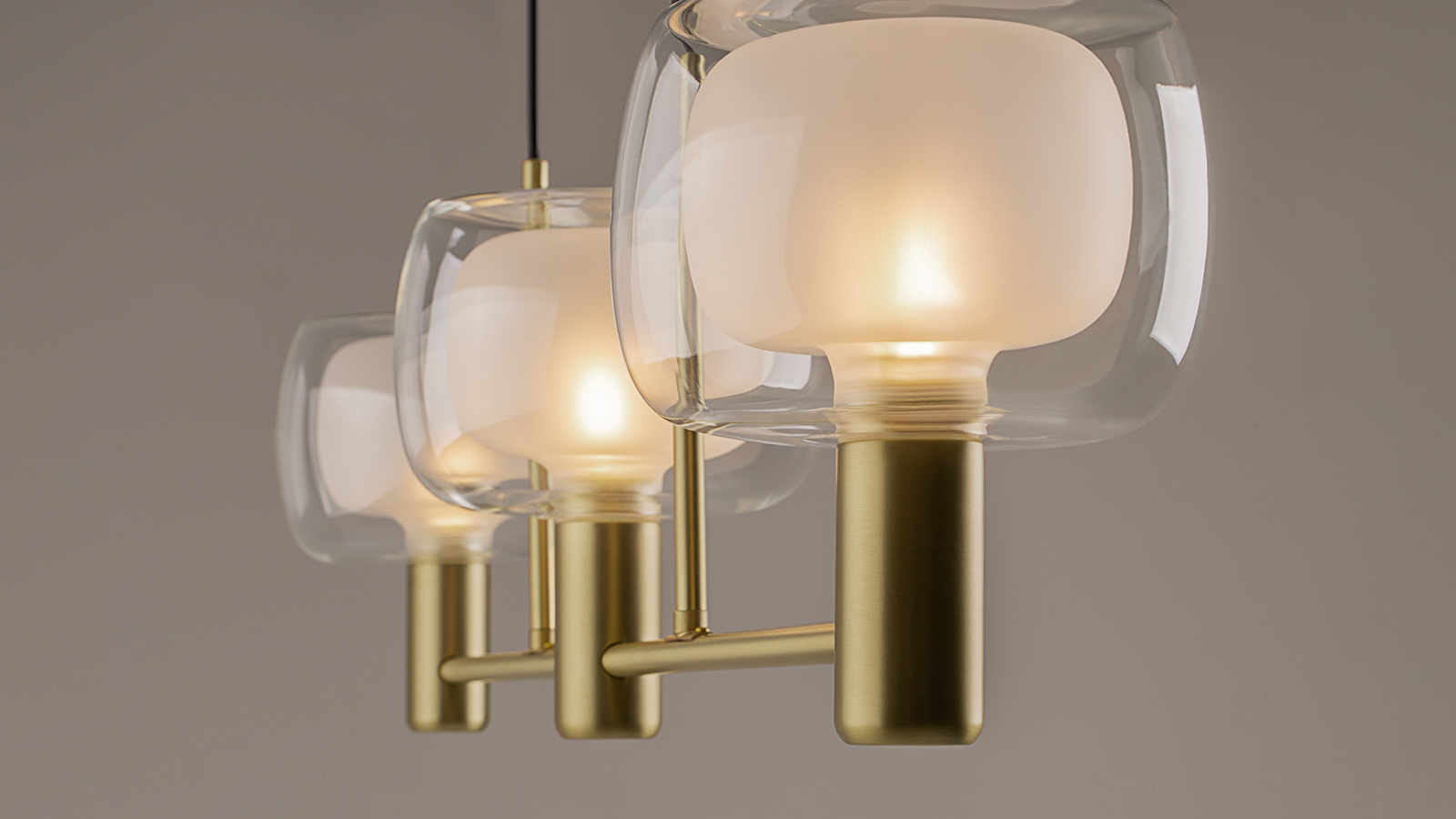 At the heart of the Vision collection are double-blown glass shades. The series name honors the glassmakers whose keen vision and exceptional craftsmanship allow them to achieve precise consistency in this complex technique, producing shades that are nearly identical in form. Inspired by mid-20th-century Italian design, the glass and metal elements feature clean, flowing silhouettes.