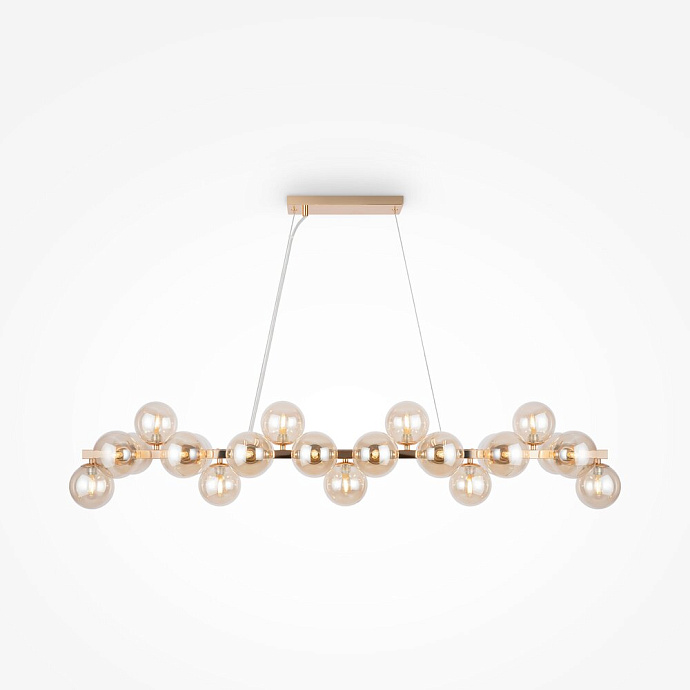 The series showcases large-scale sculptural compositions formed by numerous blown glass spheres. The tinted or clear shades, mounted on polished metal branches, gently diffuse and soften the light, creating a sophisticated visual effect. The luminaires are available in gold, chrome, and brass colors. Suspension height is easily adjustable via the cable length. The series includes ceiling-mounted fixtures, pendants, and wall lamps, offering flexibility for a wide range of interior layouts.