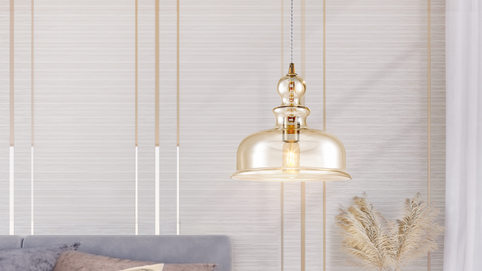 The Tone collection introduces an Eastern flair through intricately shaped blown glass shades paired with metal frames. The twisted fabric-covered power cord and complex glass forms evoke vintage lighting designs. These fixtures bring warmth and sophistication to apartments, country homes, and restaurant interiors.