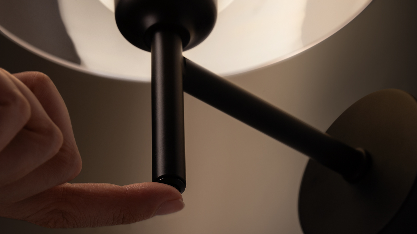 The wall luminaire switch is located in its base. This provides for maximum comfort and ease of use in work and rest areas