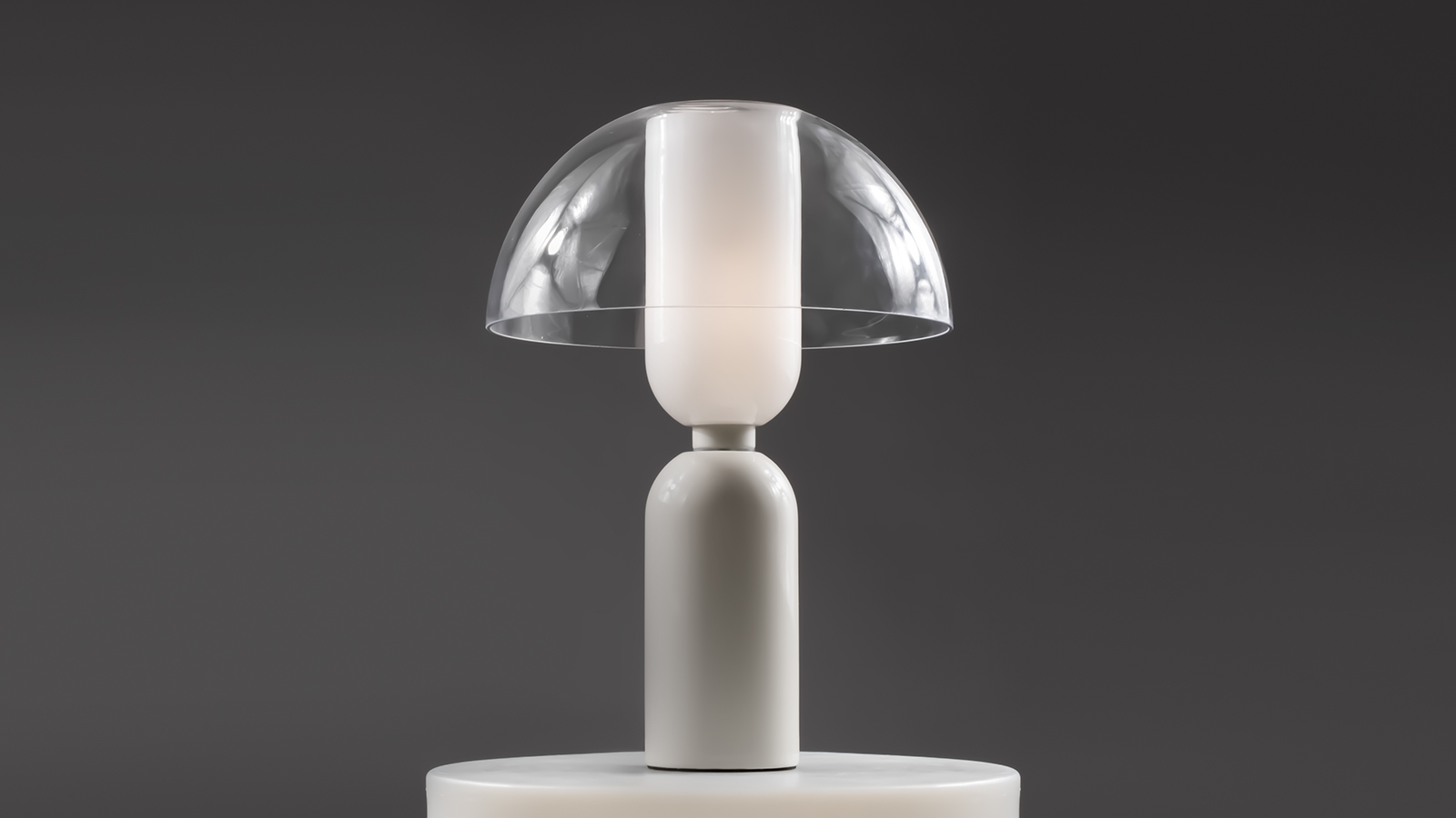 The Memory luminaire resembled a hourglass that transports you back in time, evoking nostalgia for the days long past. Glossy ceramics and a combination of glass colors ranging from translucent white to crystal clear to mirror gold - these are all classic materials with a long history, revealing the idea of this series to the fullest extent.