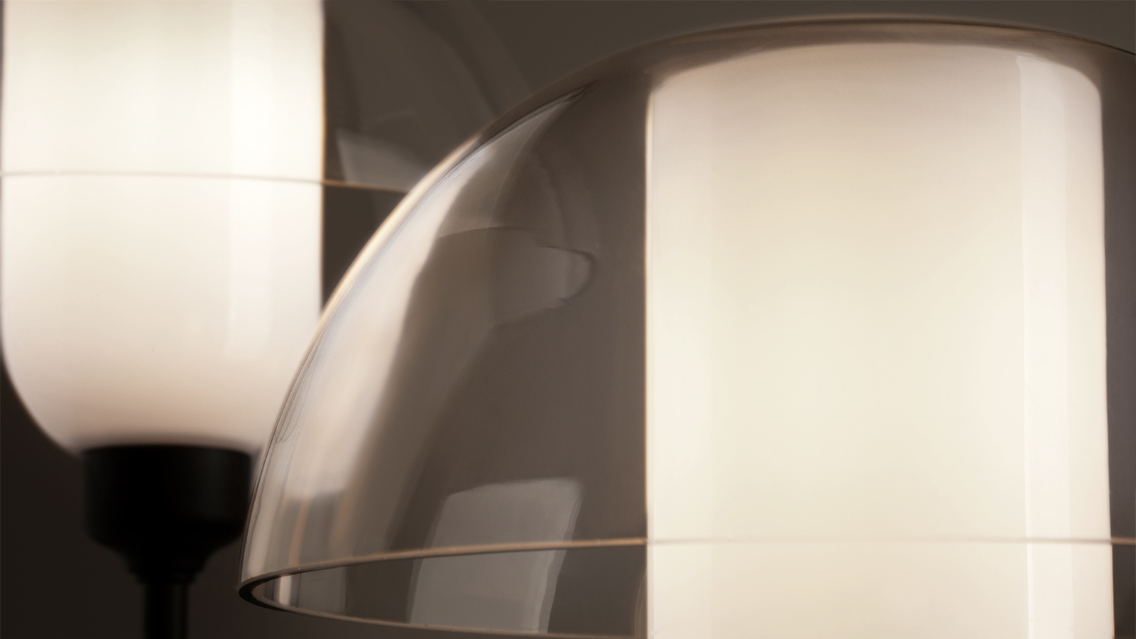 The combination of an internal semi-transparent white glass reflector and an outer transparent glass lampshade provides a soft, bright glow with a graceful glare, creating a relaxed and balanced feeling. The design provides easy access to the main light source and prevents the contamination of the matte reflector's inside. Replaceable bulbs provide for individual selection of wattage and color temperature.