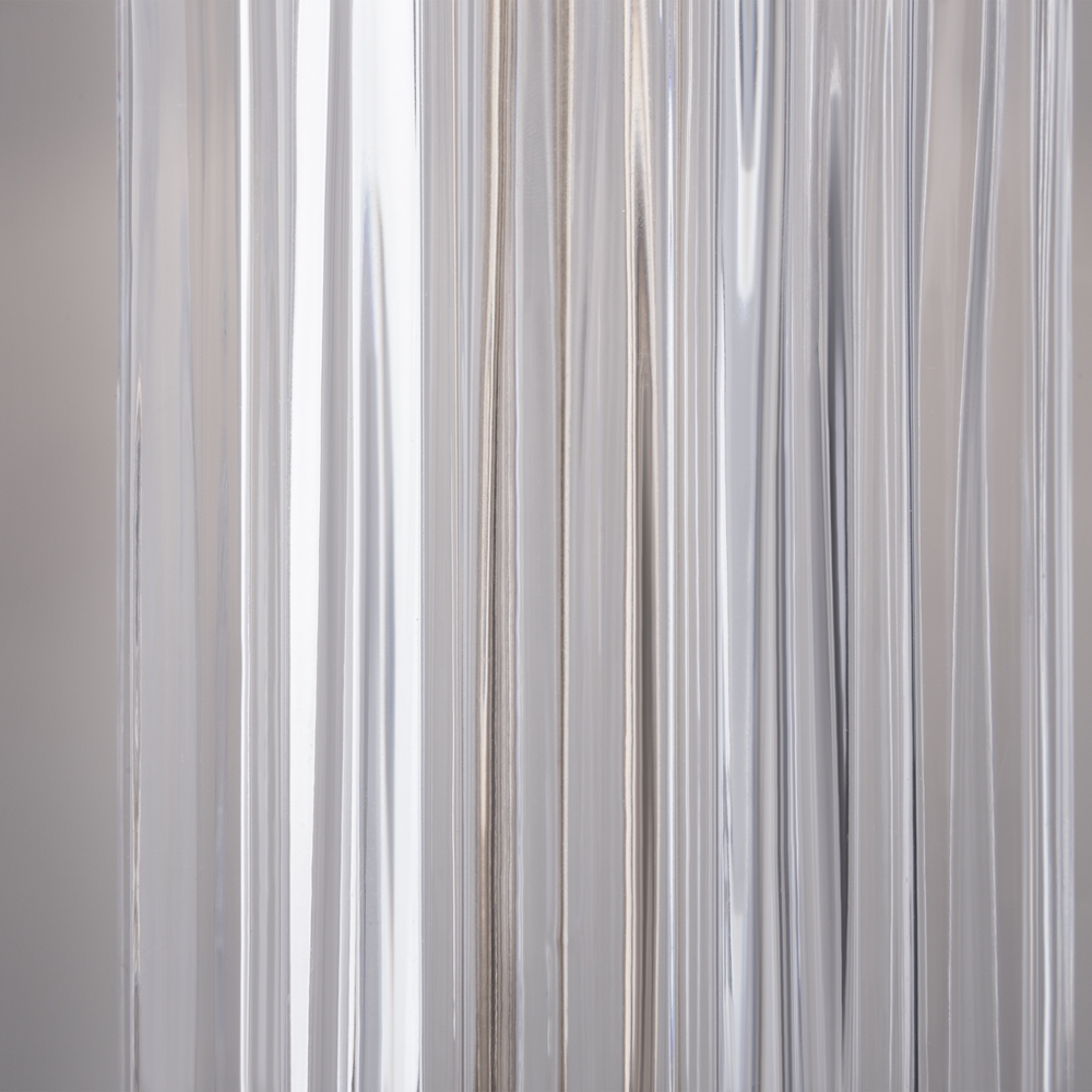 This series of elegant table luminaires, tellingly named Muse, inspires with its unique design. A sculptured cast glass base makes this luminaire particularly special. Its intricate shape is fully revealed with the light on, raising it to an object of modern art. The base is available in three colors: clear, smoke and powder pink, making the choice easy. A milky cloth lampshade makes the light soft and comfortable, producing a warm, cozy vibe. The lamps use E27 bulbs.