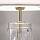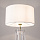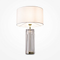 A white cotton cloth lampshade matches all three colors of transparent glass and the metal base.