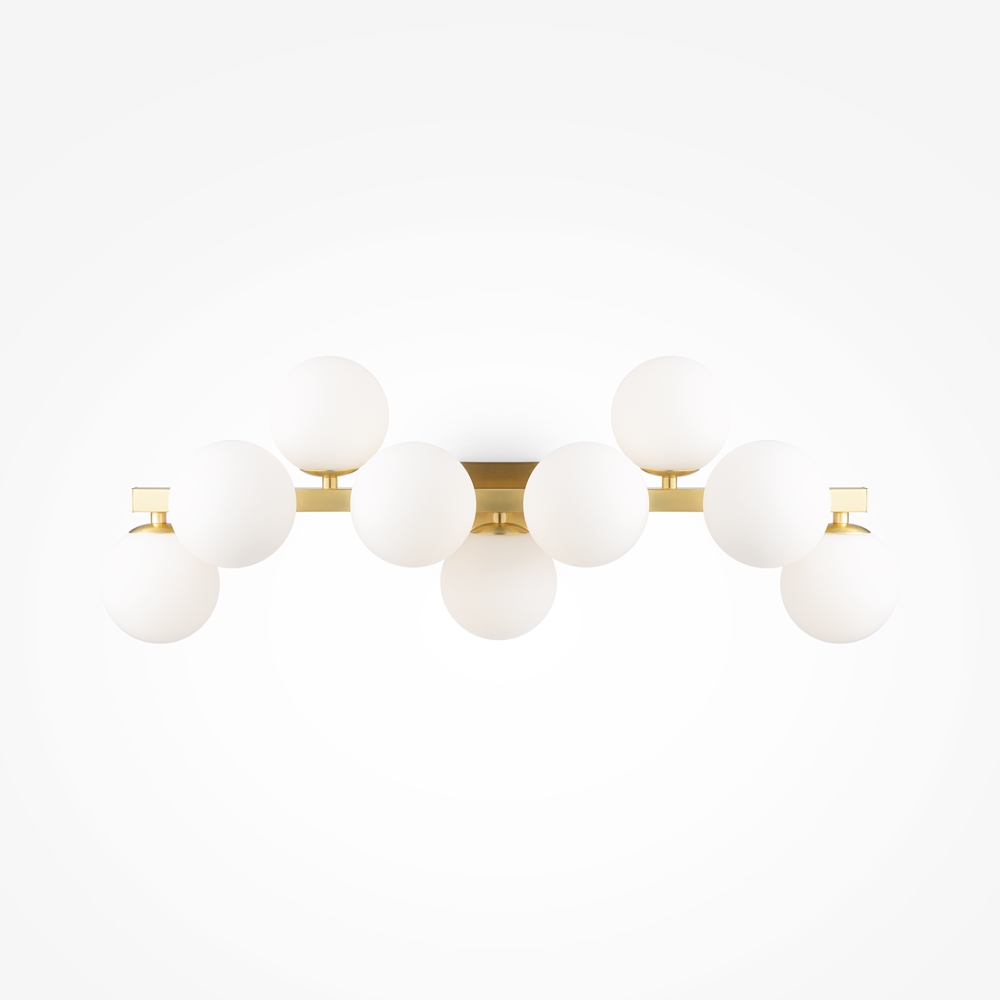 The series showcases large-scale sculptural compositions formed by numerous blown glass spheres. The tinted or clear shades, mounted on polished metal branches, gently diffuse and soften the light, creating a sophisticated visual effect. The luminaires are available in gold, chrome, and brass colors. Suspension height is easily adjustable via the cable length. The series includes ceiling-mounted fixtures, pendants, and wall lamps, offering flexibility for a wide range of interior layouts.